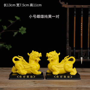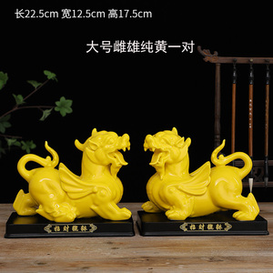 陶瓷黄色貔貅摆件一对招财风水皮丘客厅店铺家居办公室桌装饰开业