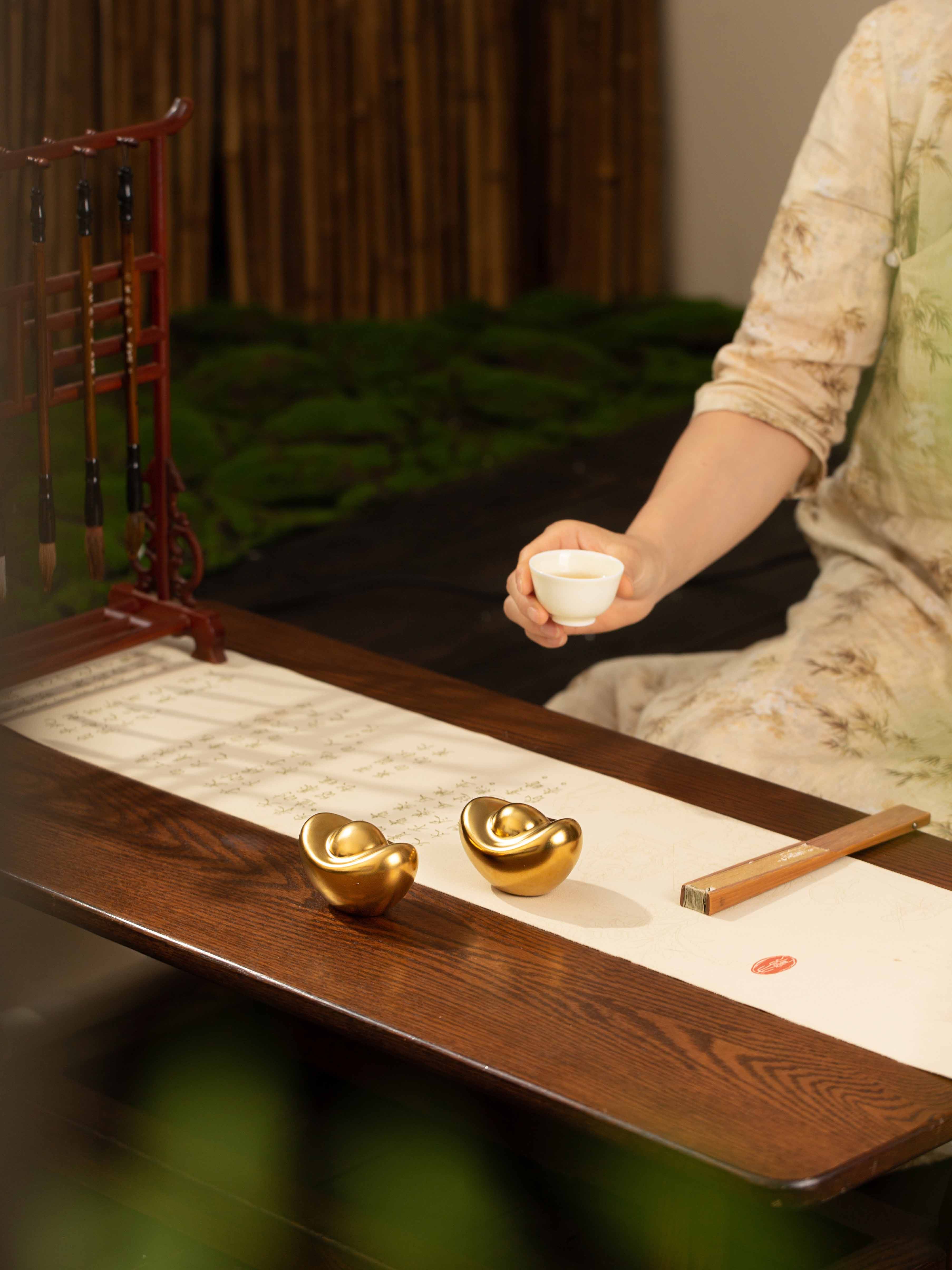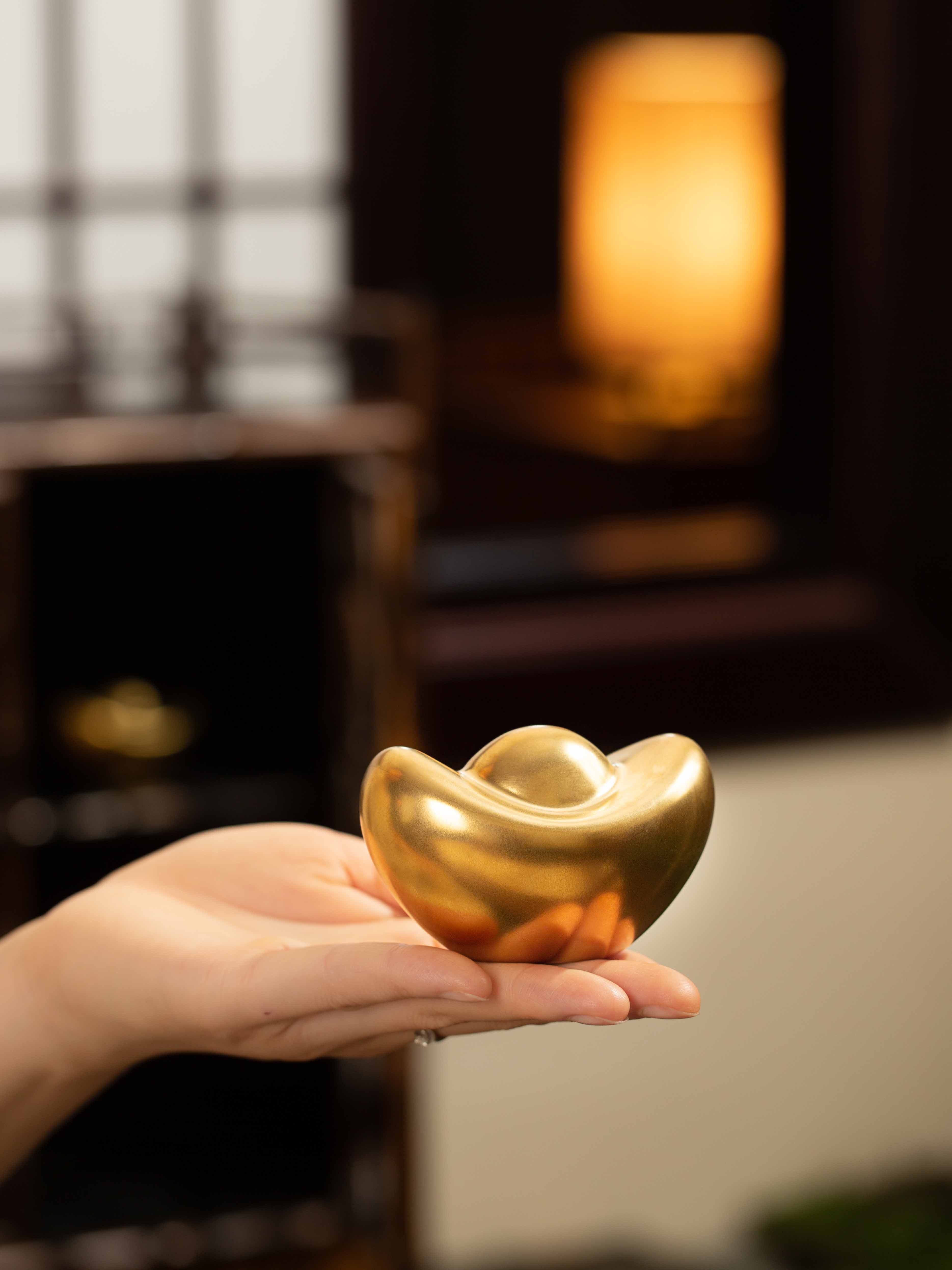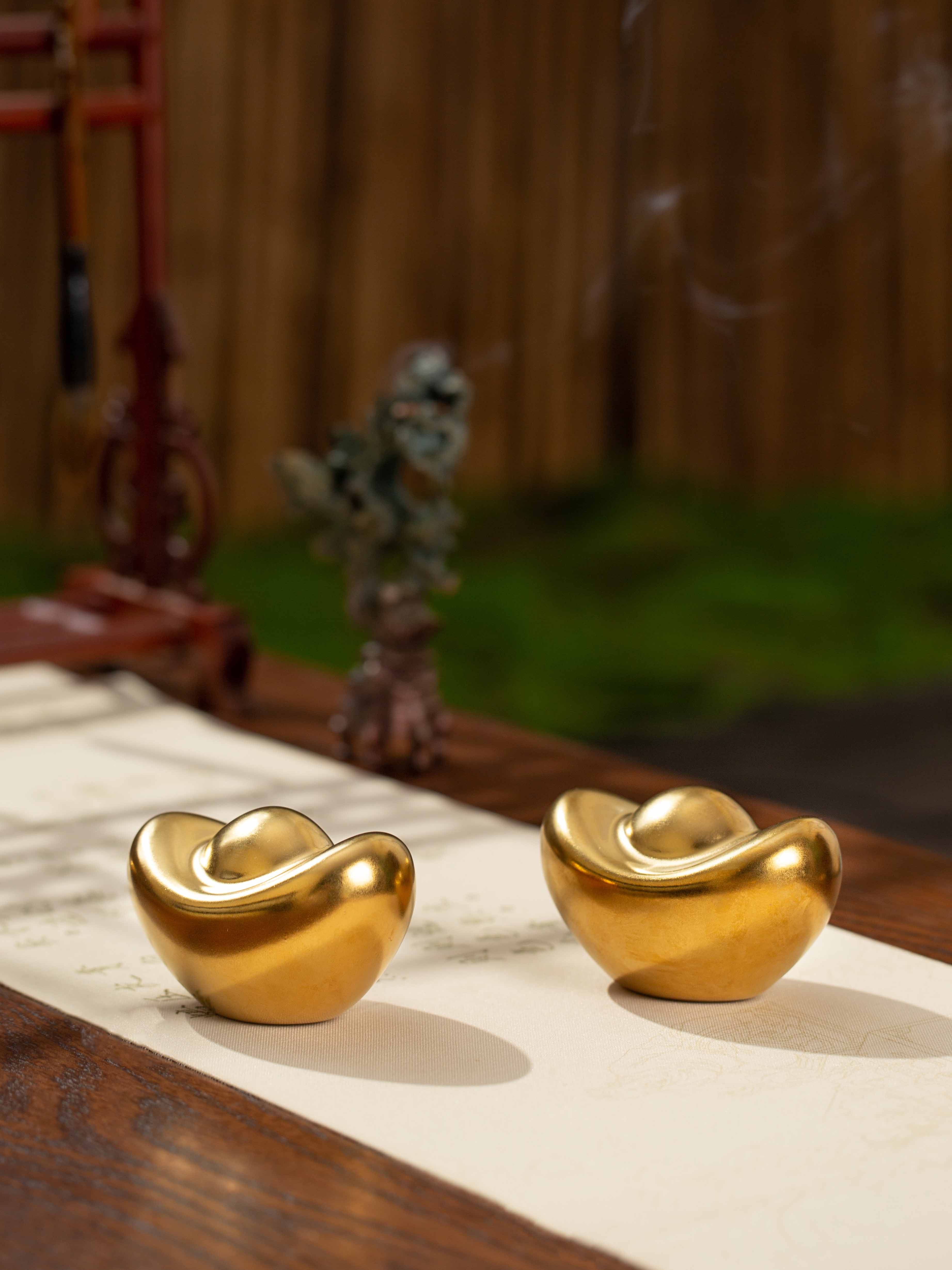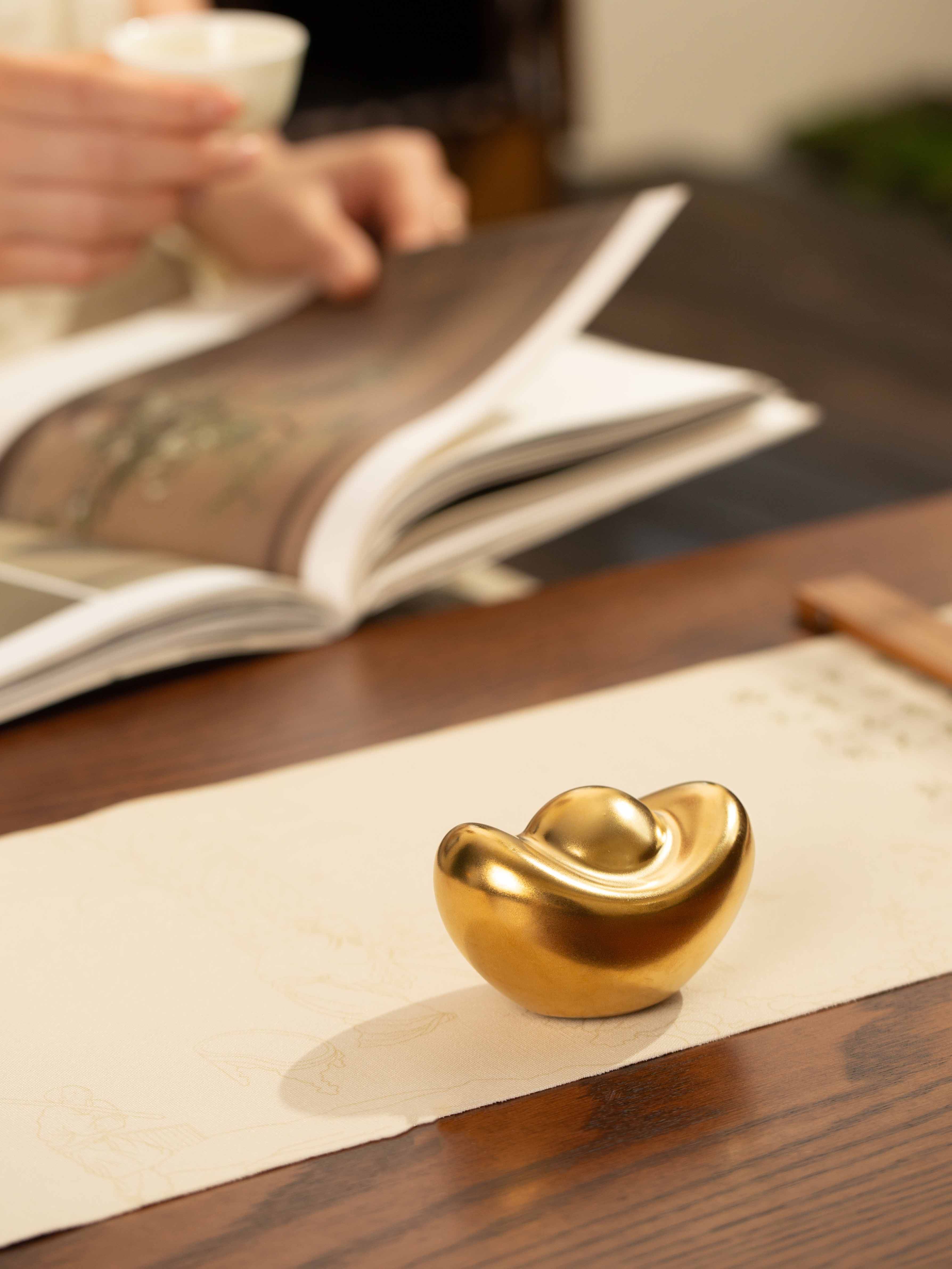 景德镇陶瓷桌面摆件金色金元宝办公室招财小物件中式客厅玄关装饰