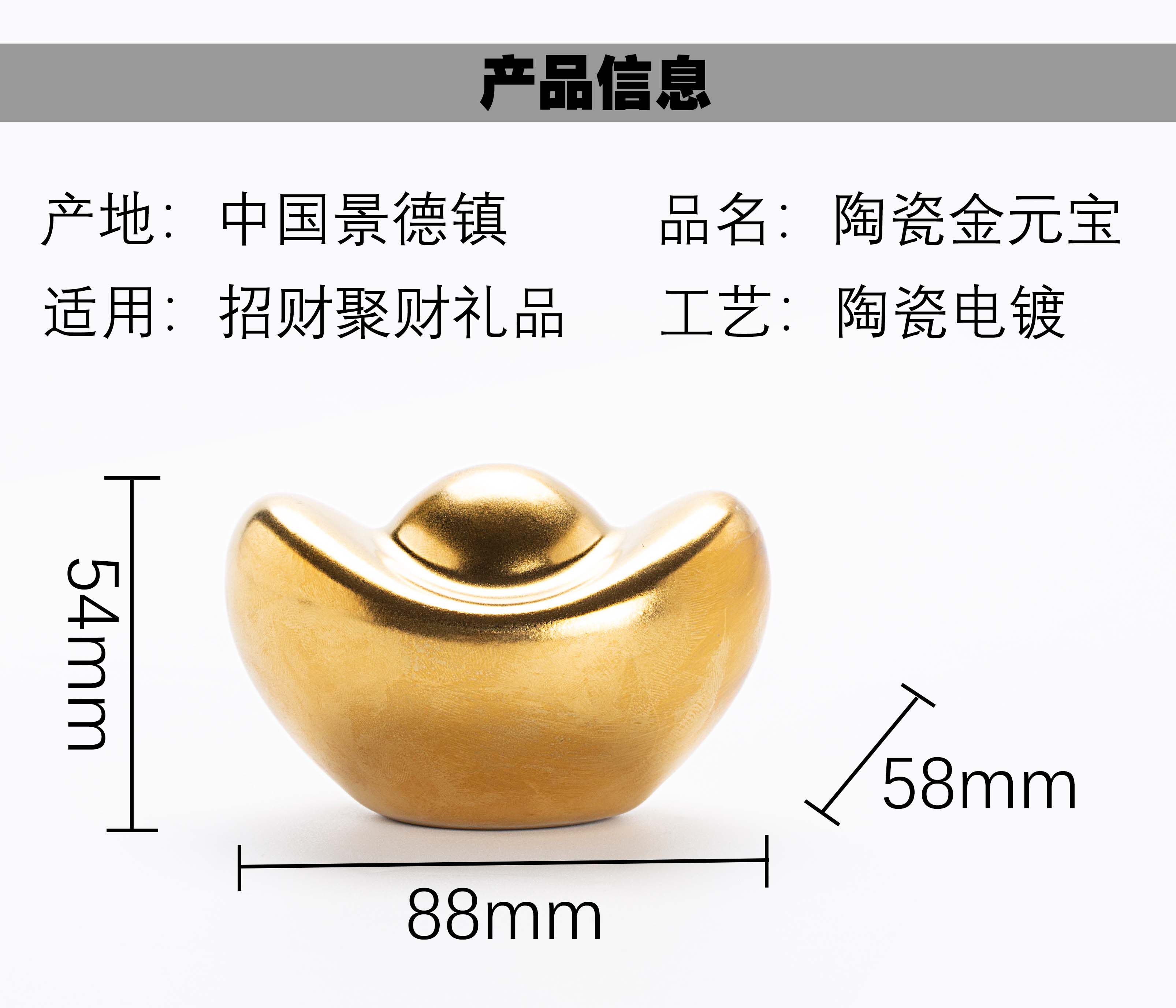 商品名称:景德镇陶瓷桌面摆件金色金元宝办公室招财小物件中式客厅玄关装饰