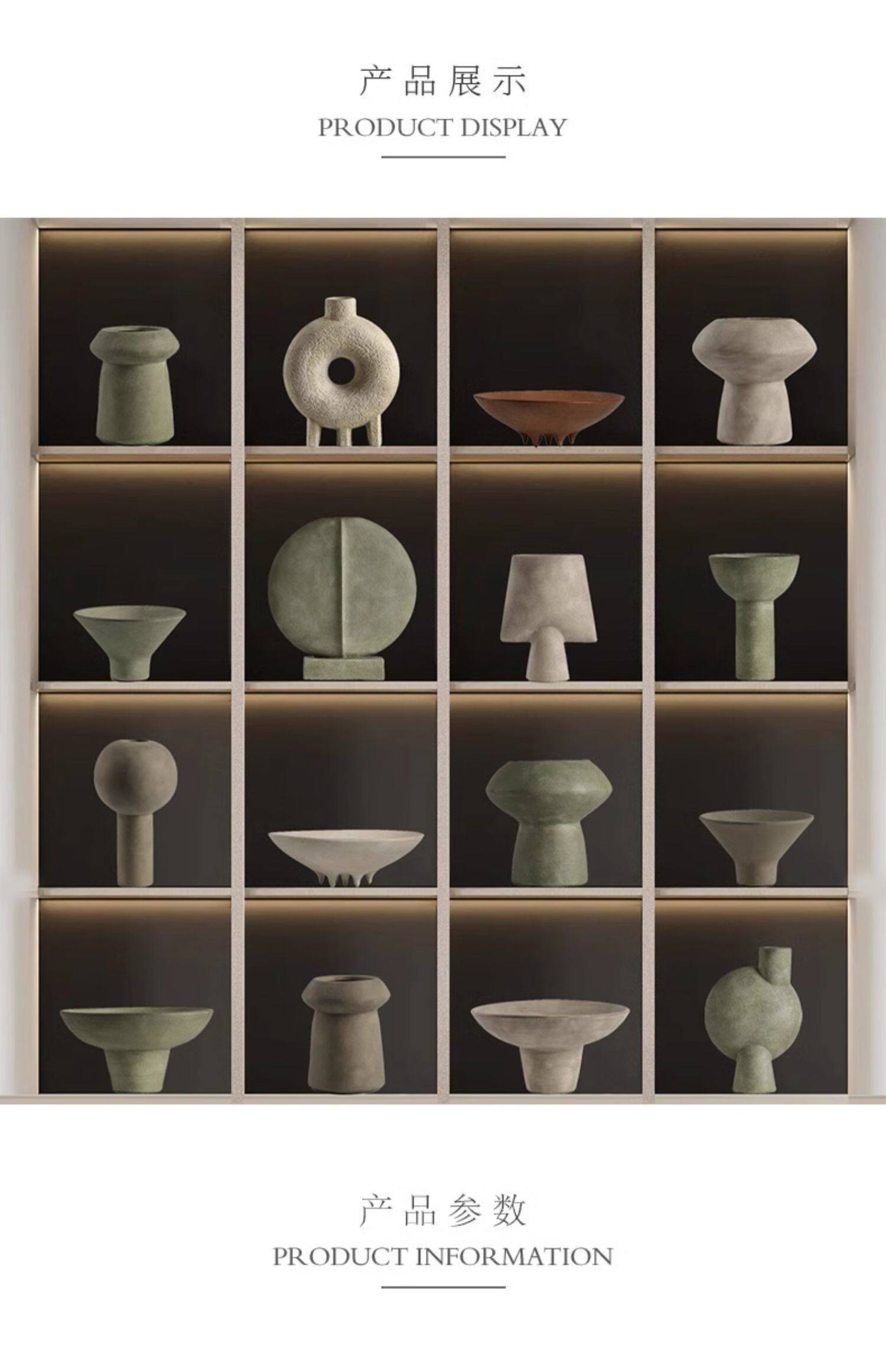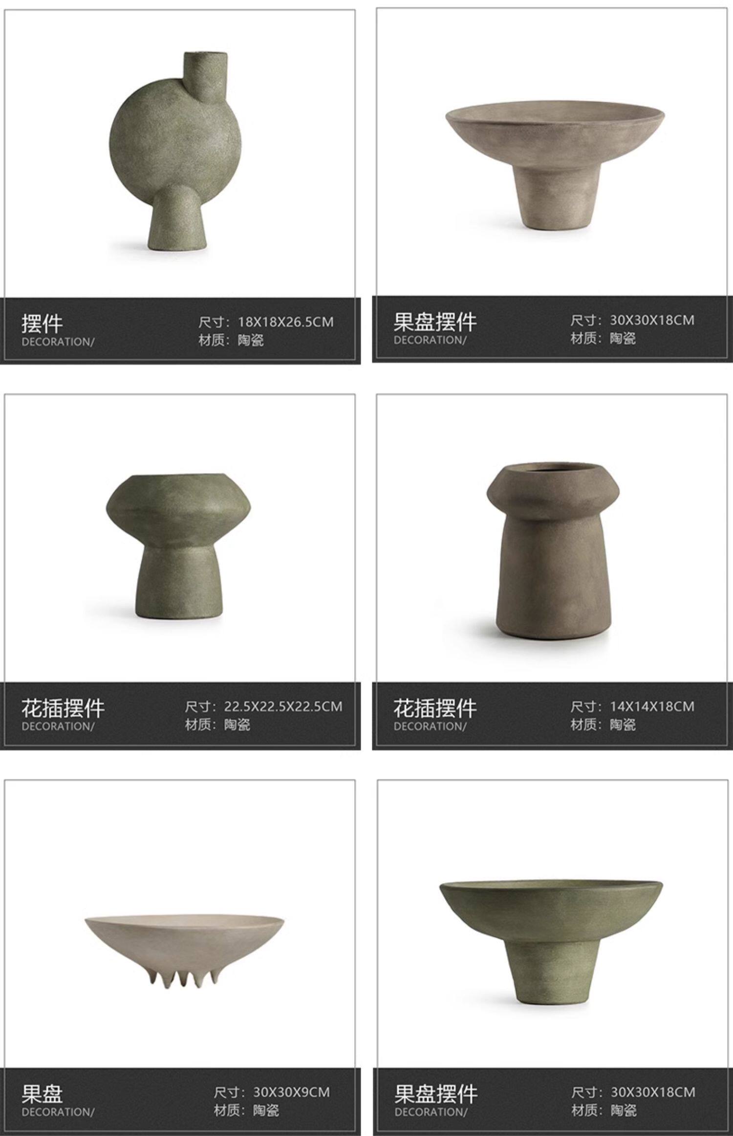 商品名称:新中式复古侘寂风陶瓷果盘花瓶摆件样板间书房客厅玄关桌面装饰品