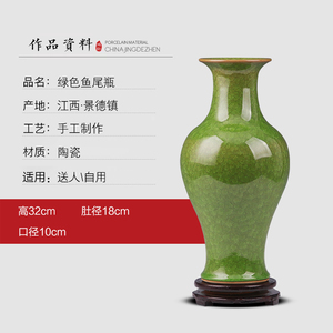 青瓷冰片鱼尾瓶【送旋转底座+鸡缸杯+收藏证书】
