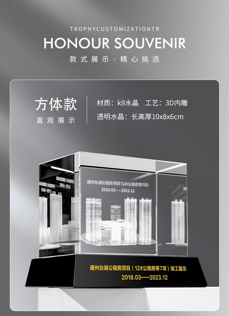 水晶内雕纪念品激光3d单位大楼雕刻摆台公司学校建筑模型摆件