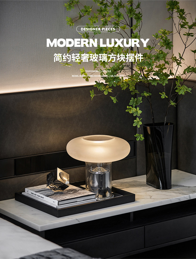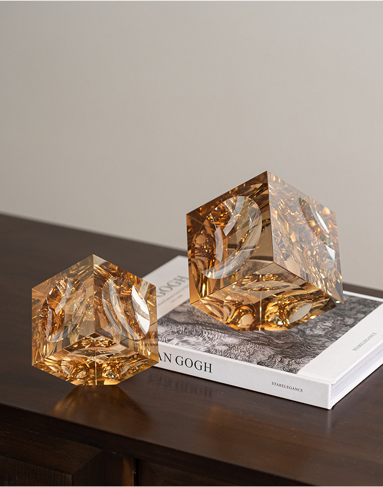 高级感水晶几何实心方块琥珀玻璃摆件现代轻奢客厅设计师软装饰品