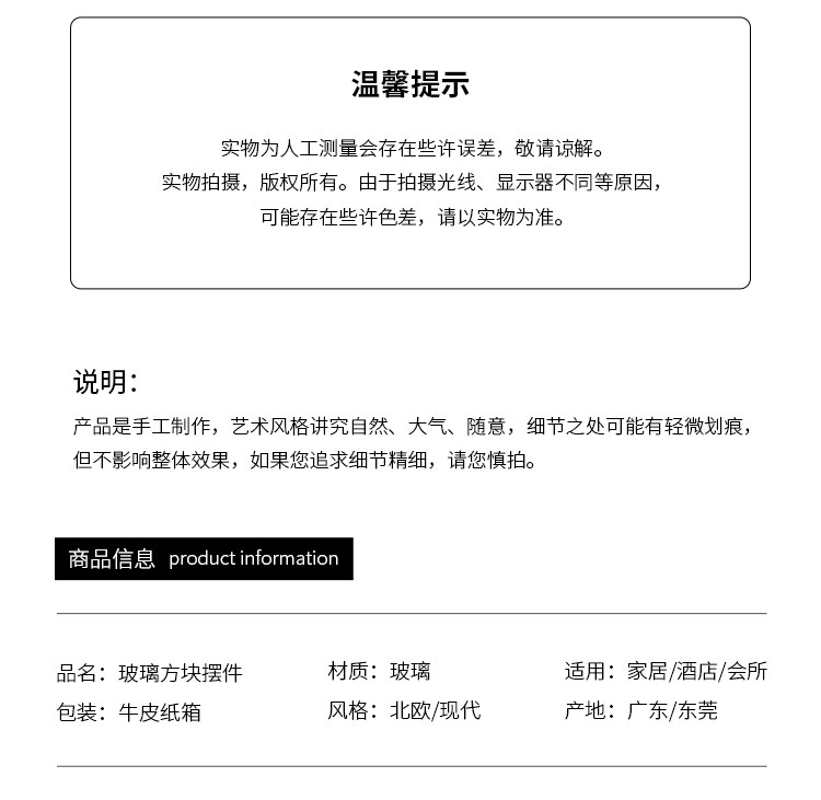商品名称:高级感水晶几何实心方块琥珀玻璃摆件现代轻奢客厅设计师软装饰品