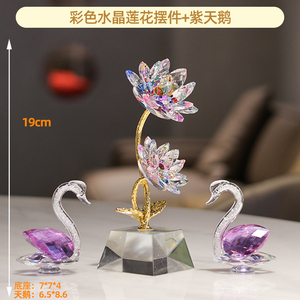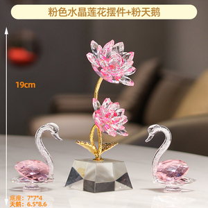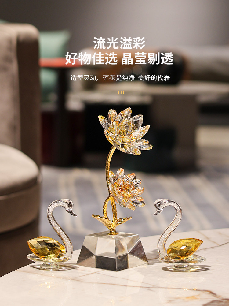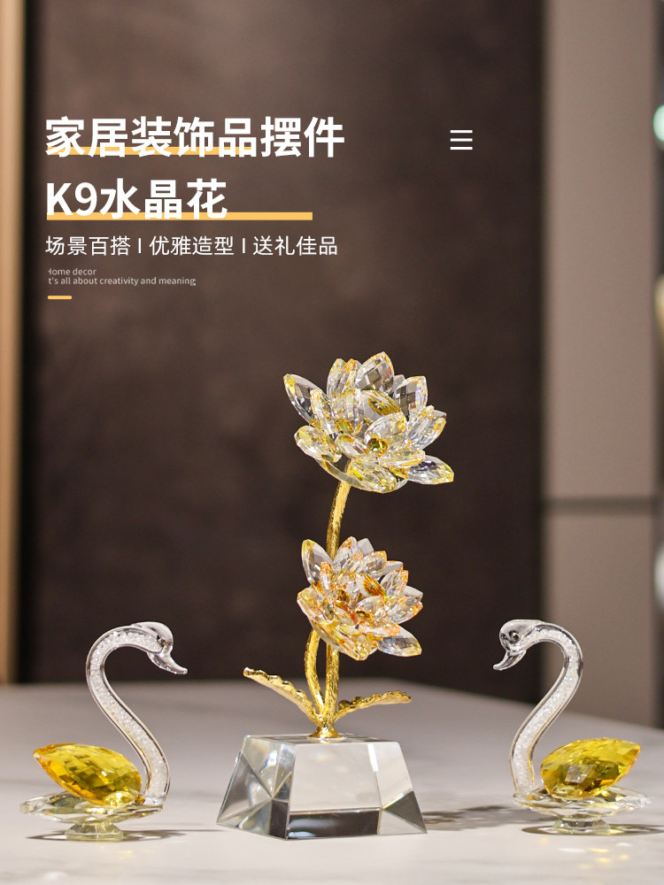 K9水晶花莲花天鹅客厅卧室书桌摆件装饰轻奢高档家居乔迁开业礼物