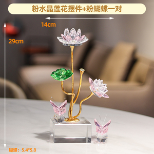 粉K9水晶莲花摆件+粉蝴蝶