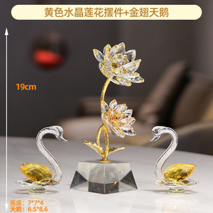 黄K9水晶莲花摆件+黄天鹅