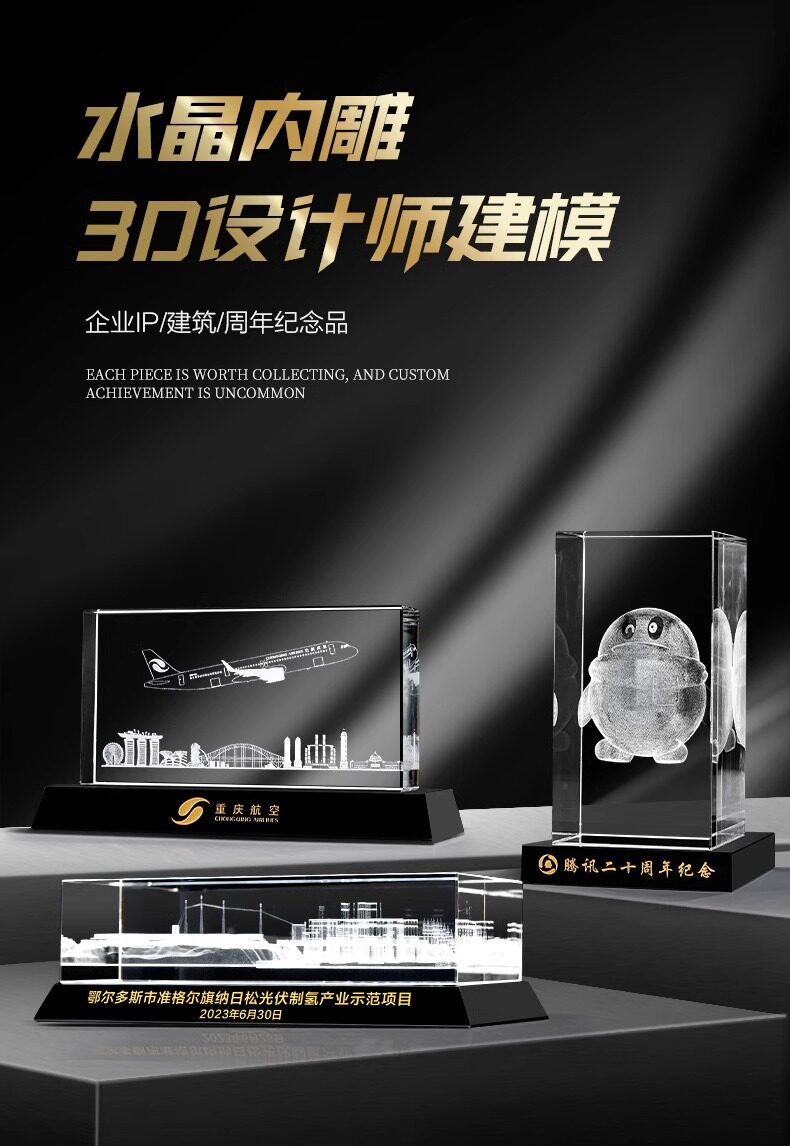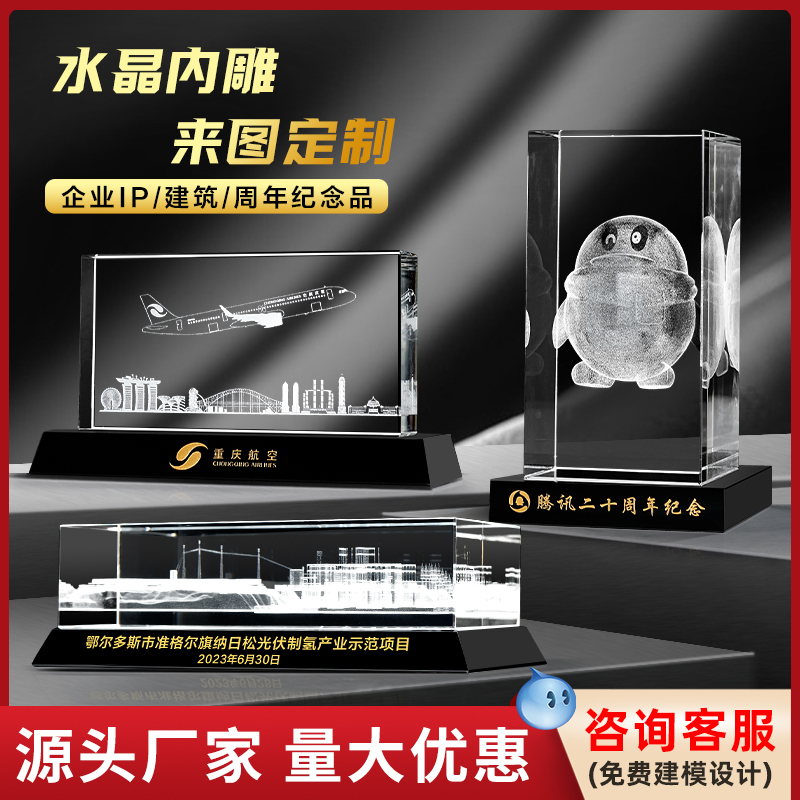 水晶内雕摆件激光3d雕刻企业学校建筑模型周年庆纪念品礼品