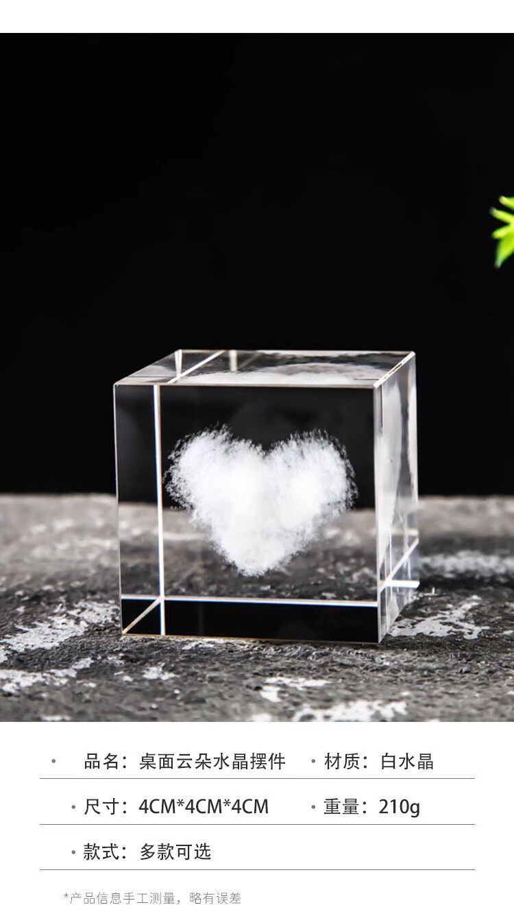商品名称:领养一朵云网红摆件水晶云立方装饰创意小众礼物桌面玻璃圣诞手工