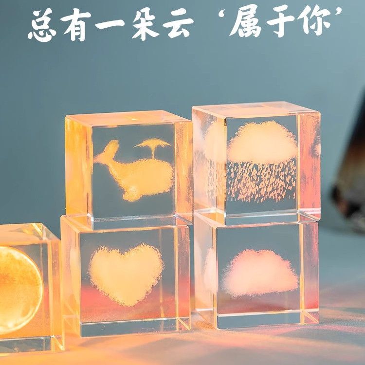 领养一朵云网红摆件水晶云立方装饰创意小众礼物桌面玻璃圣诞手工