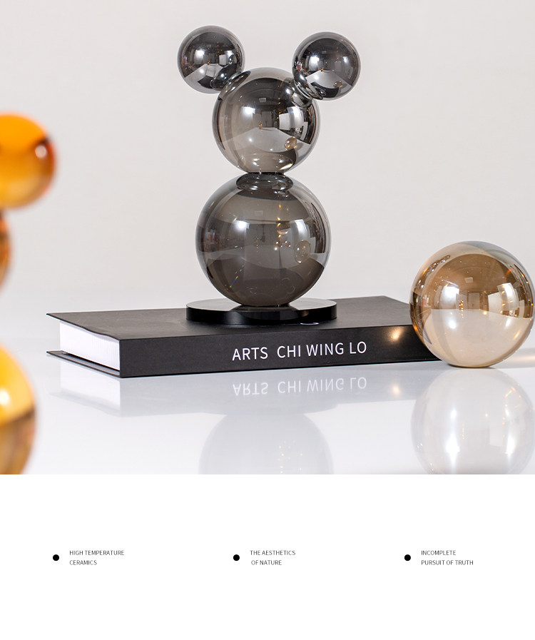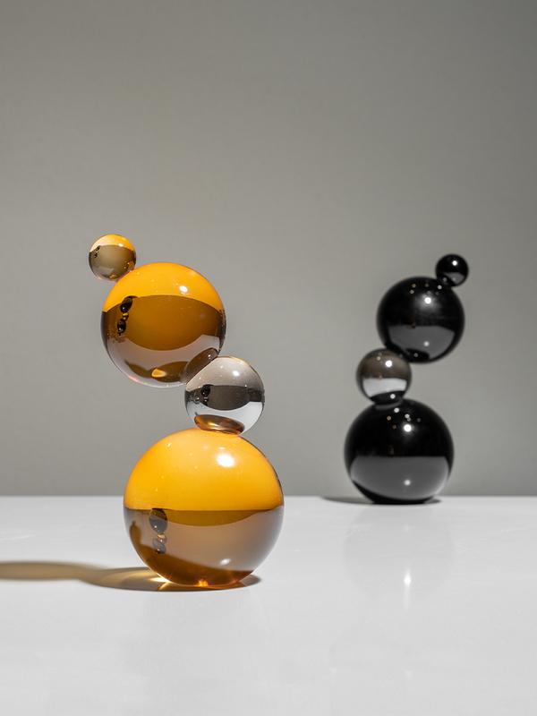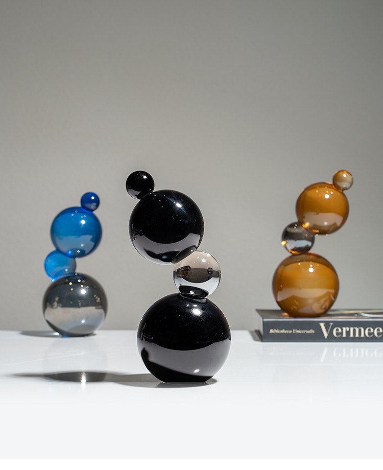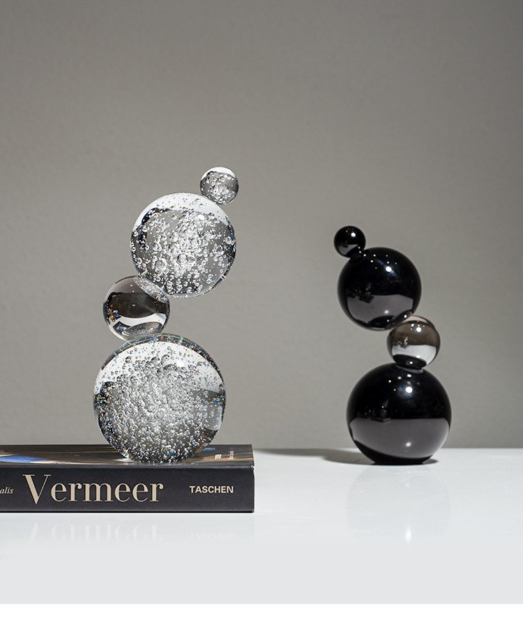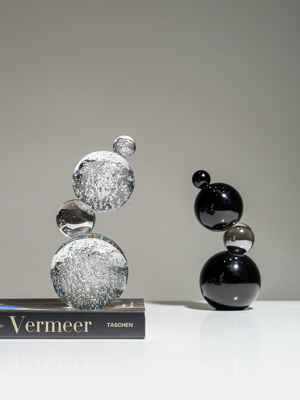 现代轻奢水晶玻璃几何摆件设计师透明气泡模型魔方软装样板房摆件