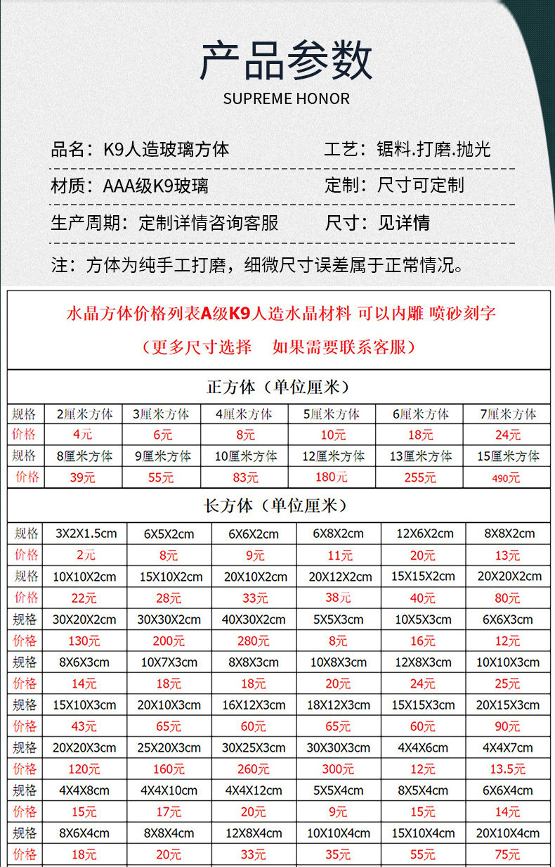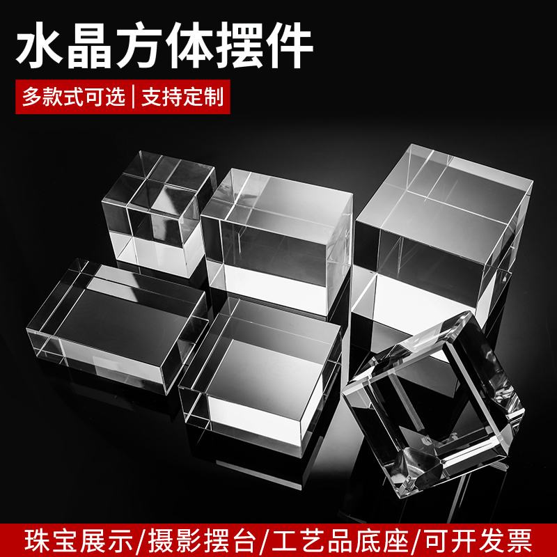 商品名称:K9人造玻璃水晶方体摆件可内雕刻字摄影摆台道具珠宝展示高透