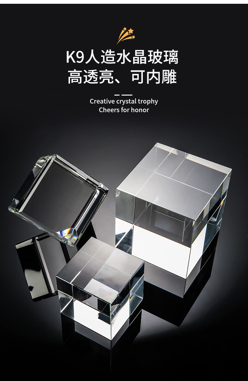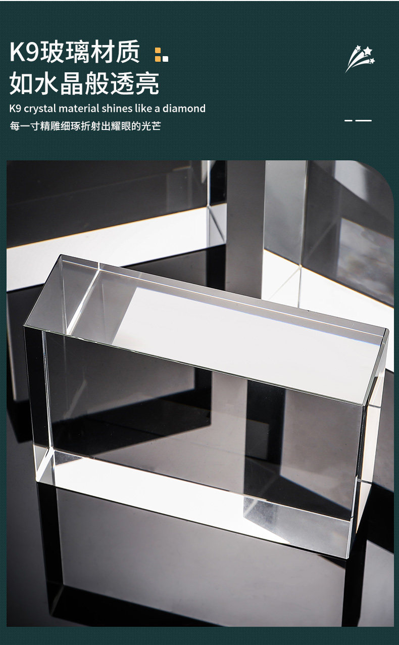 K9人造玻璃水晶方体摆件可内雕刻字摄影摆台道具珠宝展示高透
