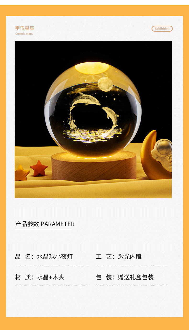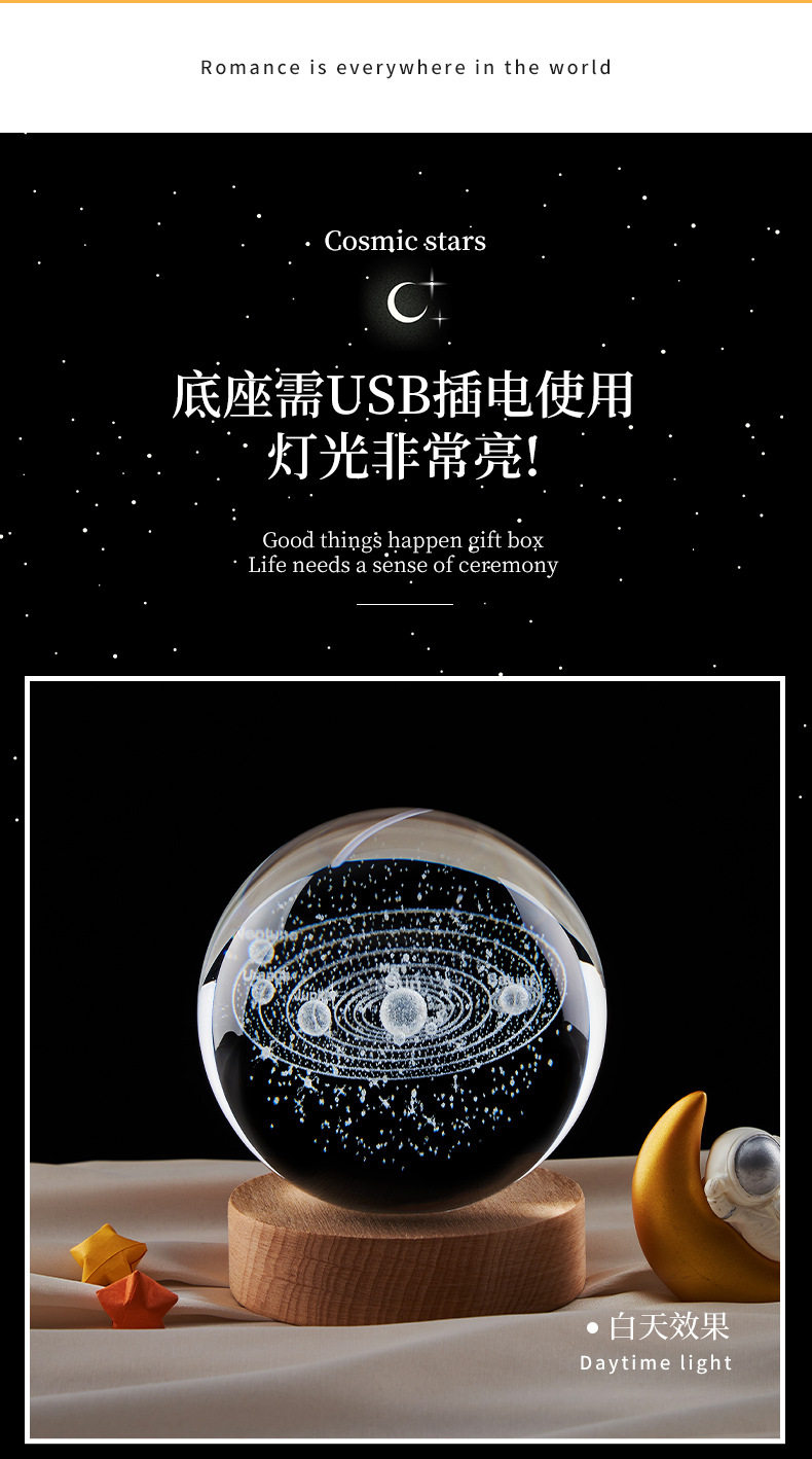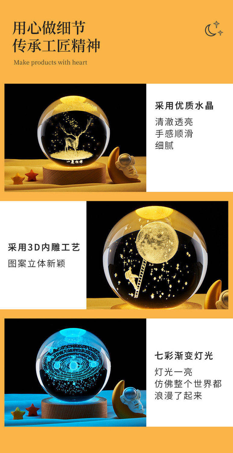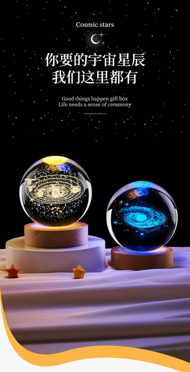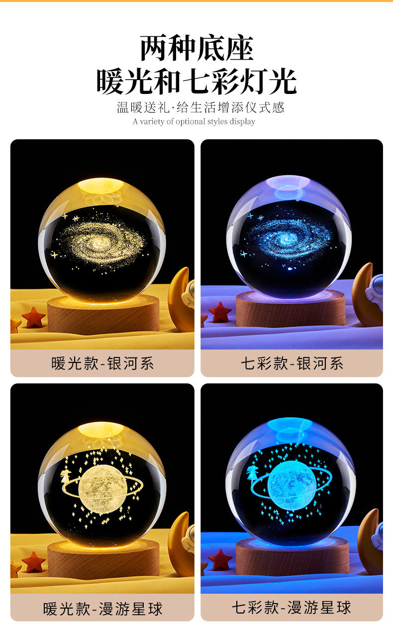 商品名称:星系银河系内雕水晶球桌面摆件创意礼品卧室小夜灯送女生日礼物