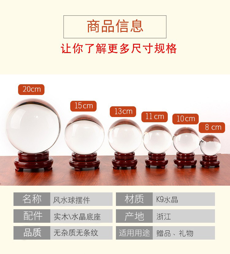 商品名称:水晶球摆件透明白圆球玻璃客厅办公桌玄关家居装饰品拍照摄影道具
