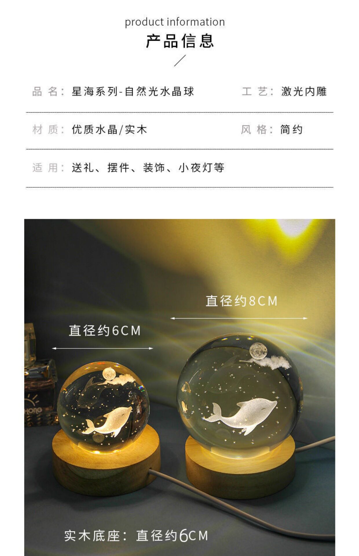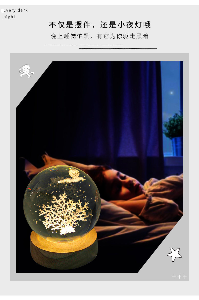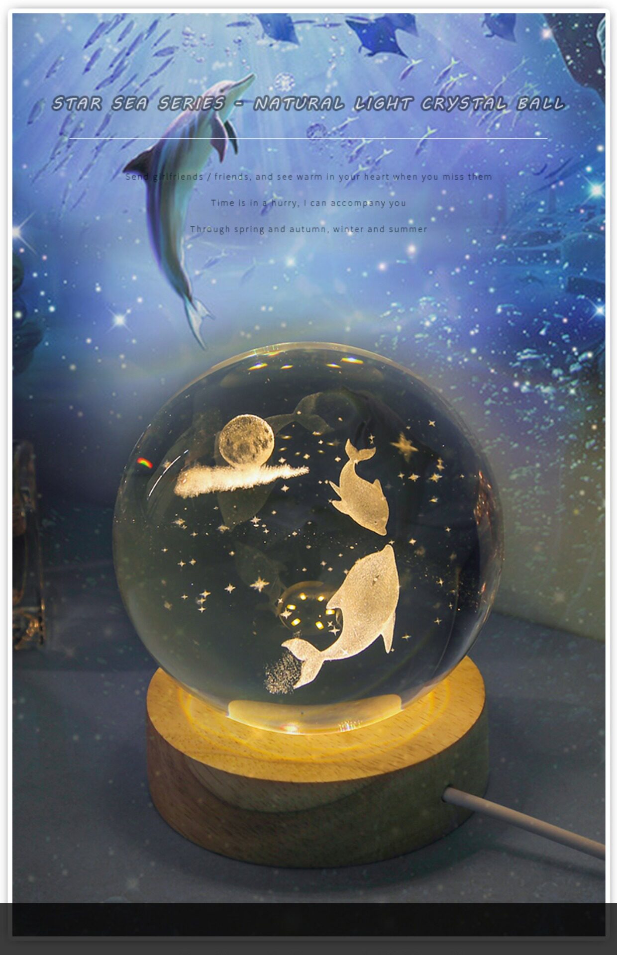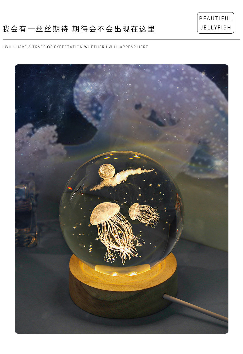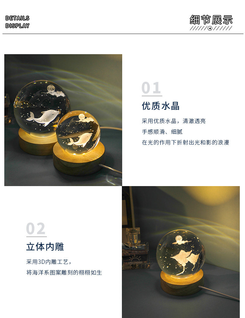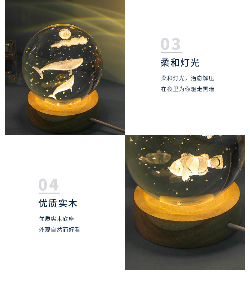 商品名称:海豚发光水晶球小夜灯摆件玻璃球生日礼物女生女孩女友高级感七夕