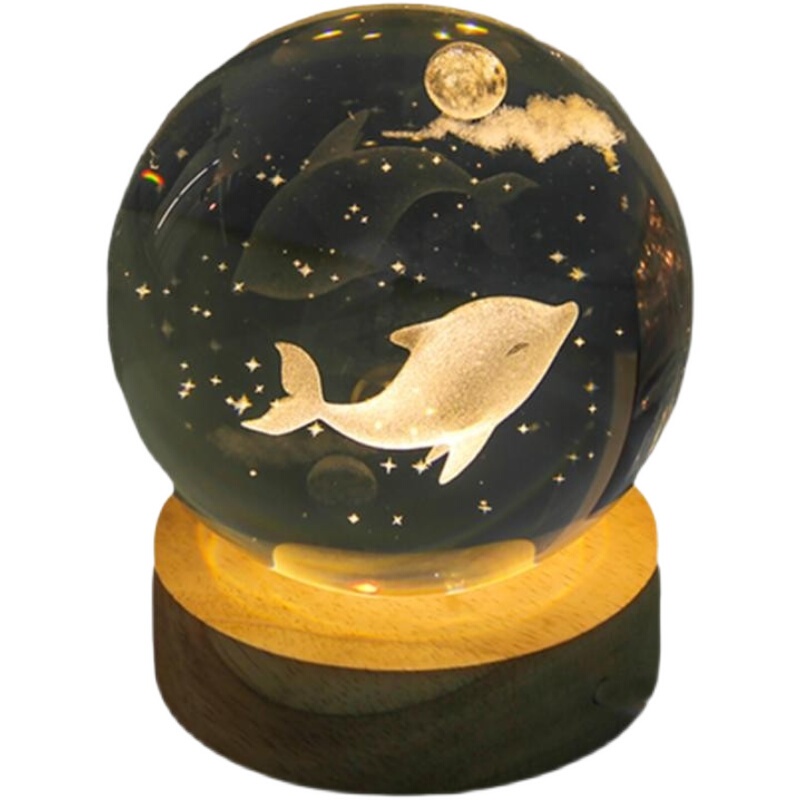 海豚发光水晶球小夜灯摆件玻璃球生日礼物女生女孩女友高级感七夕