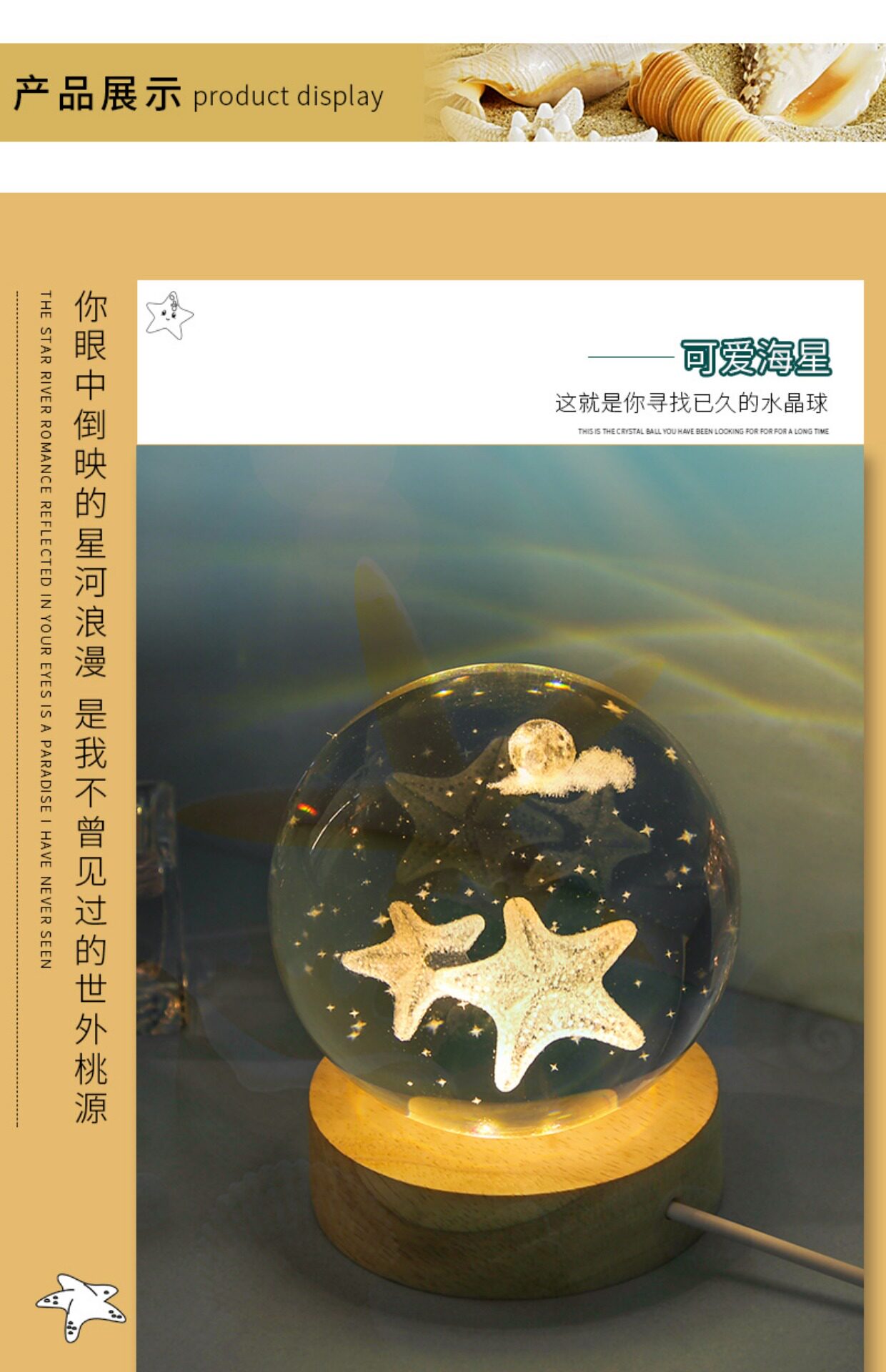 8cm可爱海星+圆木灯座刻字 送礼袋