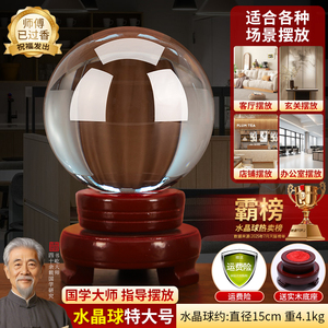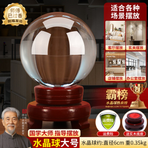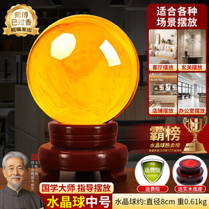 黄色水晶球摆件玻璃球底座可旋转玄关客厅白水晶黄水晶办公室招财