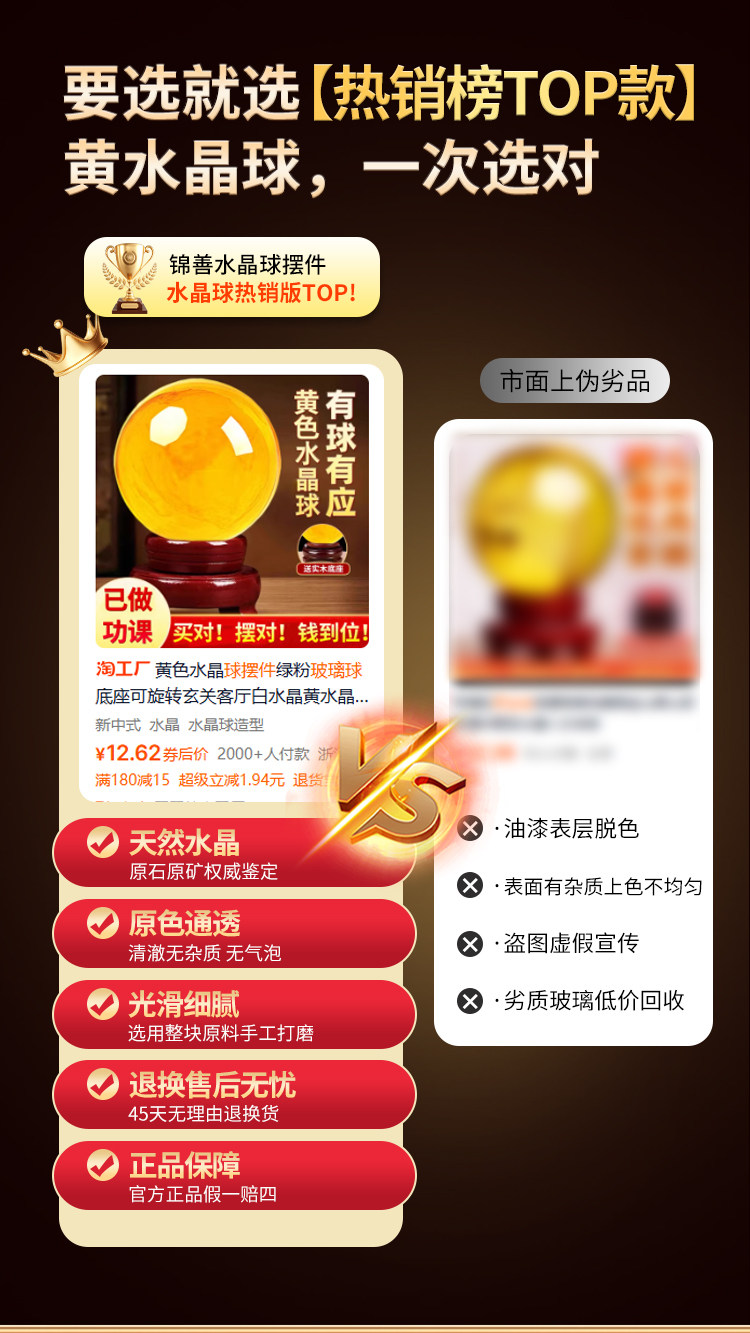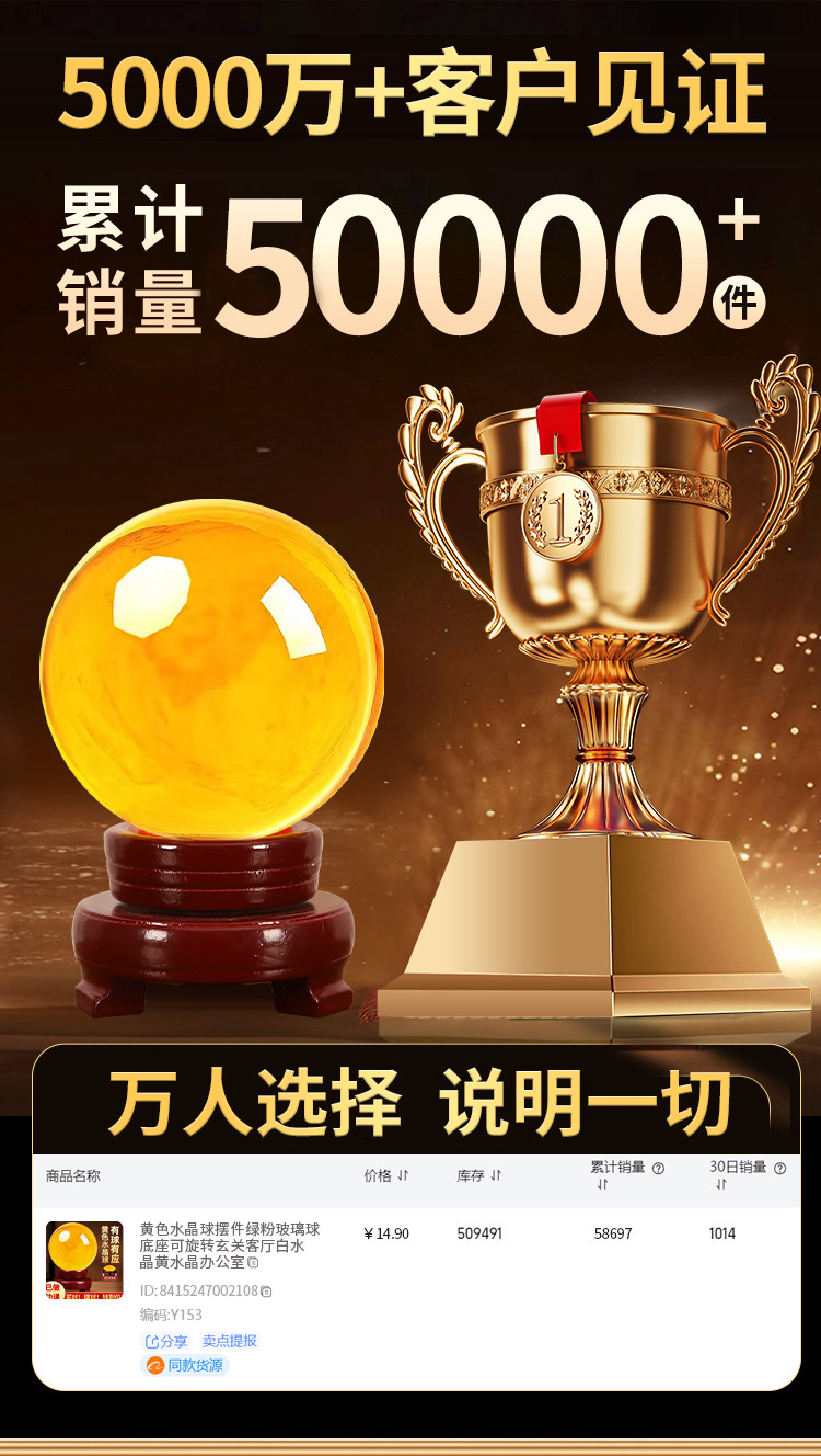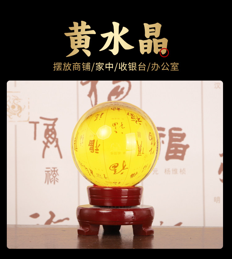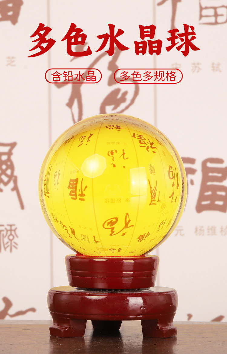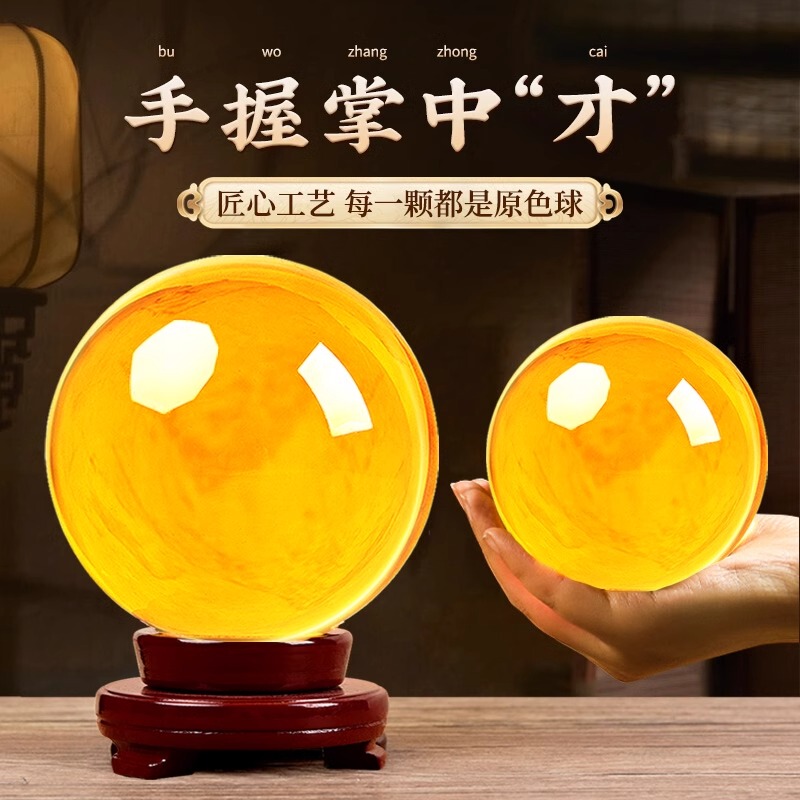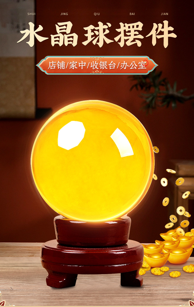 商品名称:黄色水晶球摆件玻璃球底座可旋转玄关客厅白水晶黄水晶办公室招财