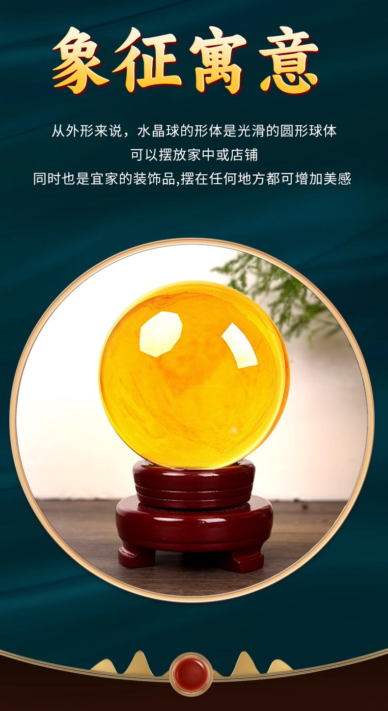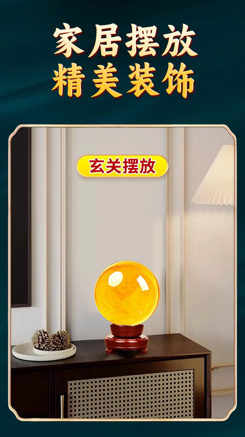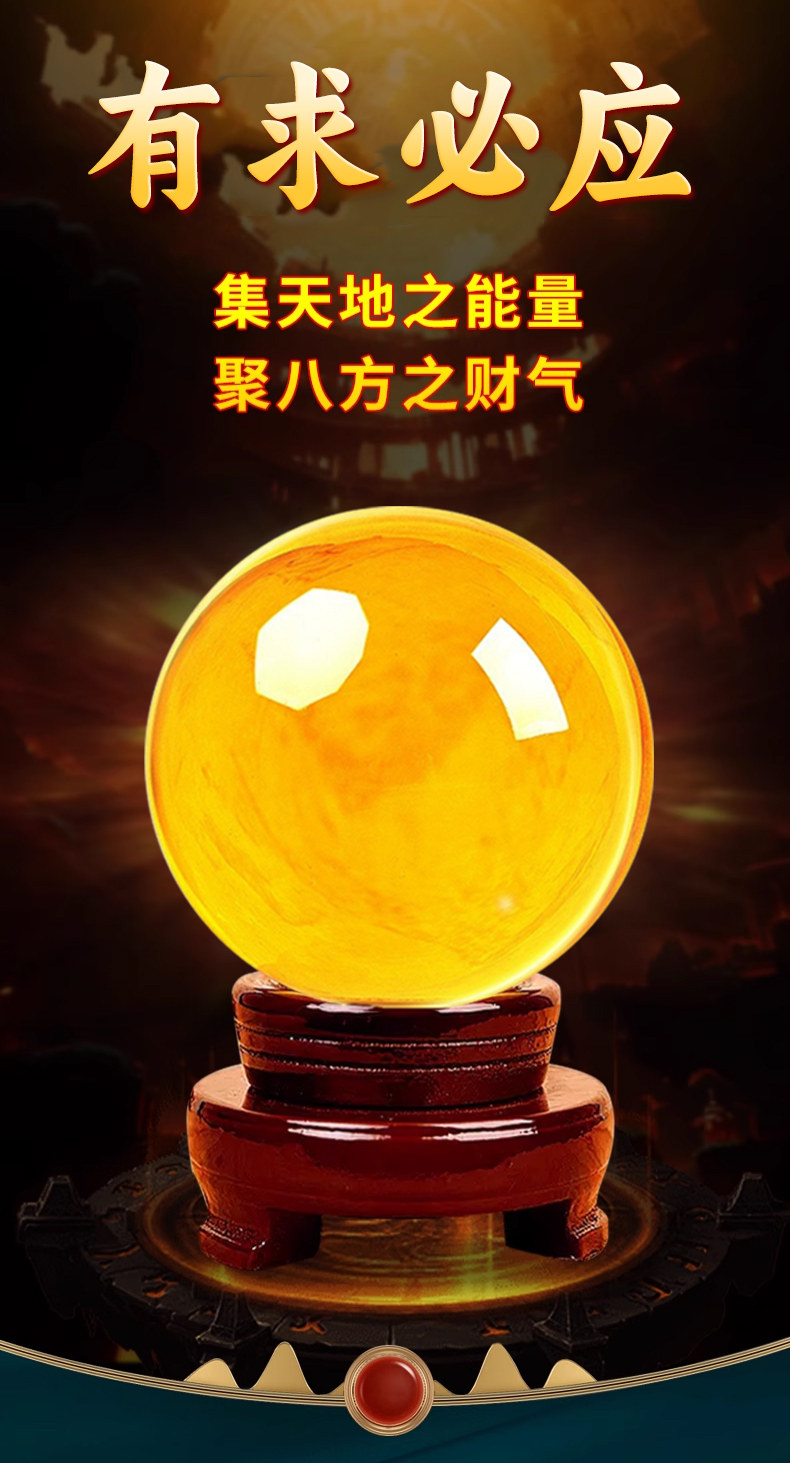 商品名称:黄色水晶球摆件招财聚财吸金透明玻璃球风水转运球店铺开业礼品