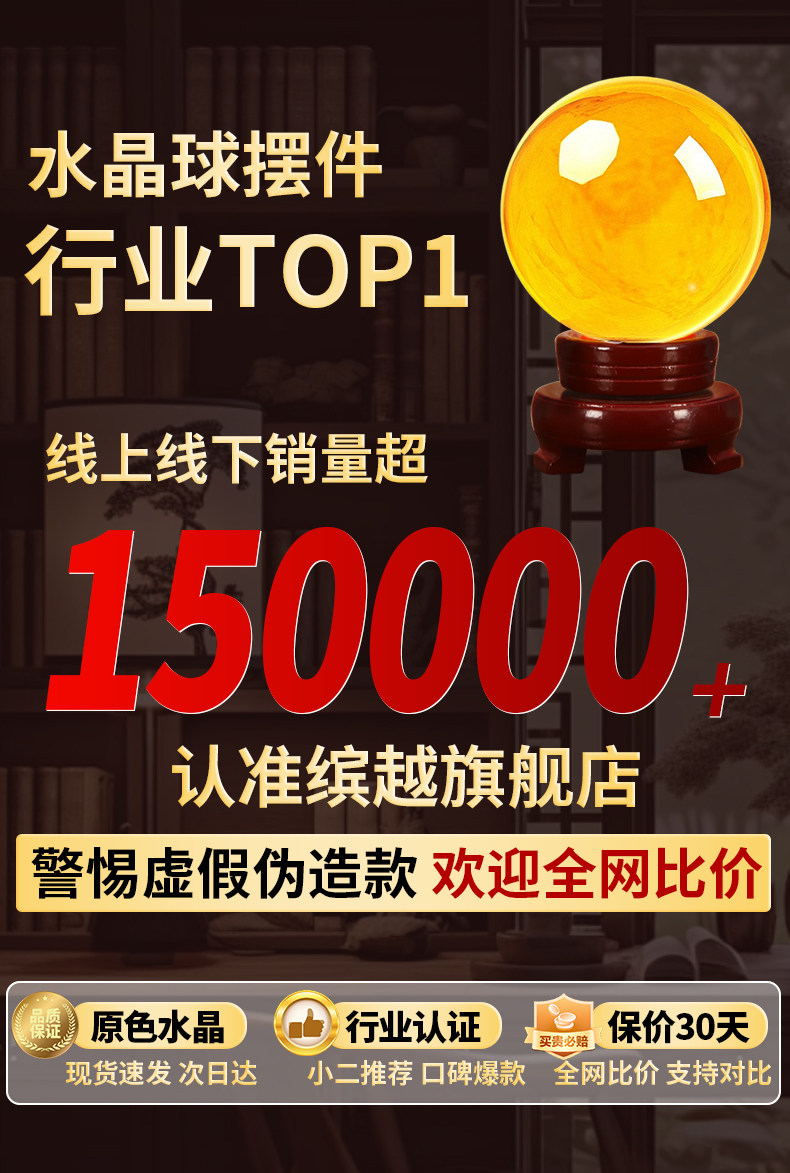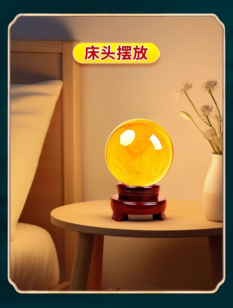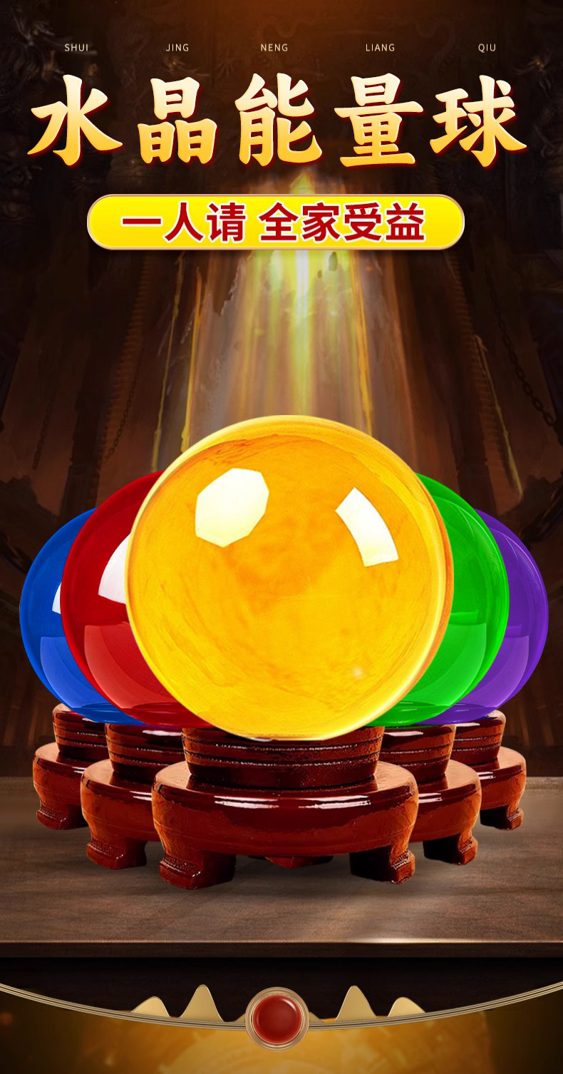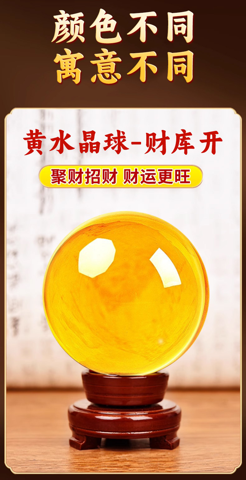 商品名称:黄色水晶球摆件招财聚财吸金透明玻璃球风水转运球店铺开业礼品