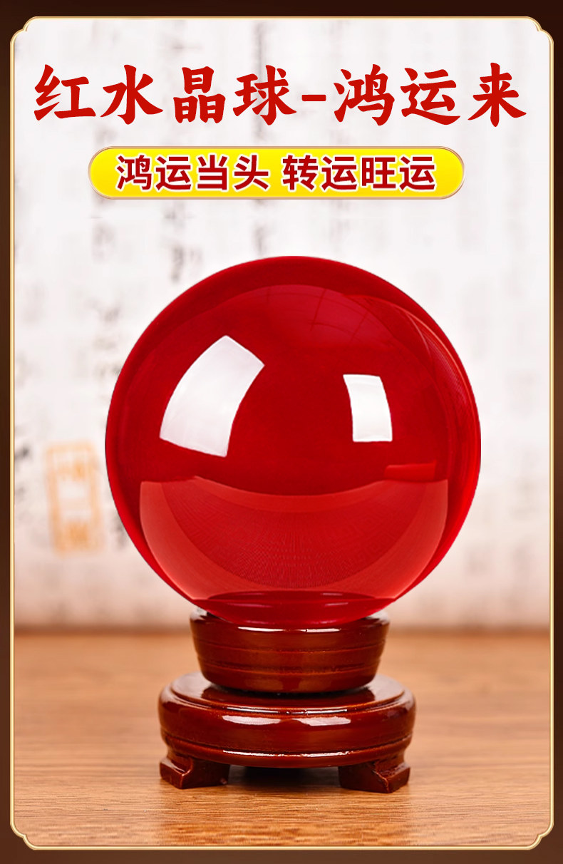 【礼盒装 祝福发出】红水晶球(直径8cm+送底座)【鸿运当头】