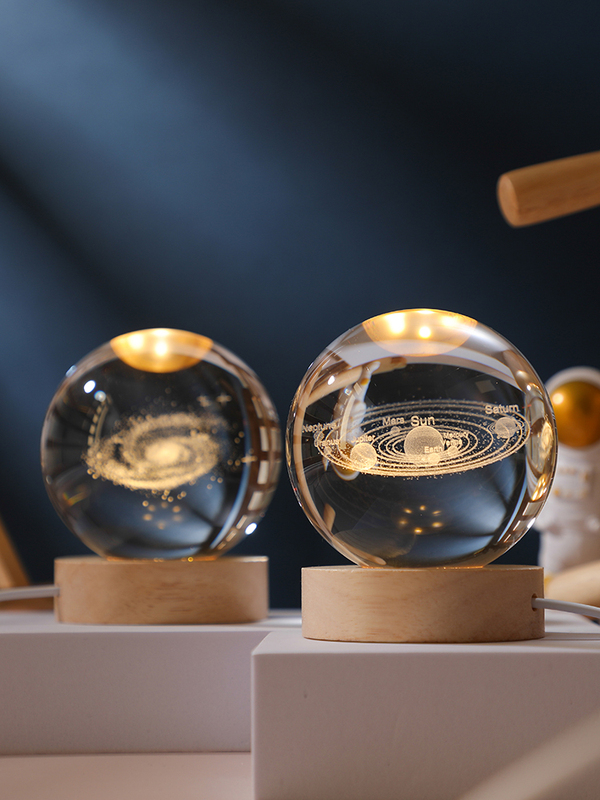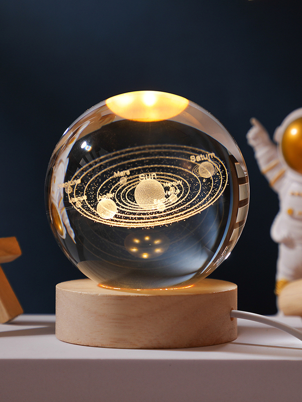 发光太阳系水晶球桌面小夜灯摆件星空玻璃球装饰品生日礼物女七夕