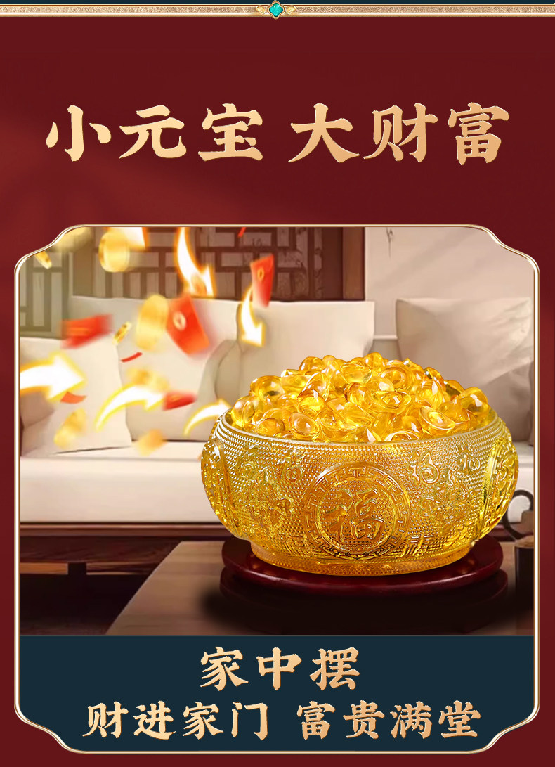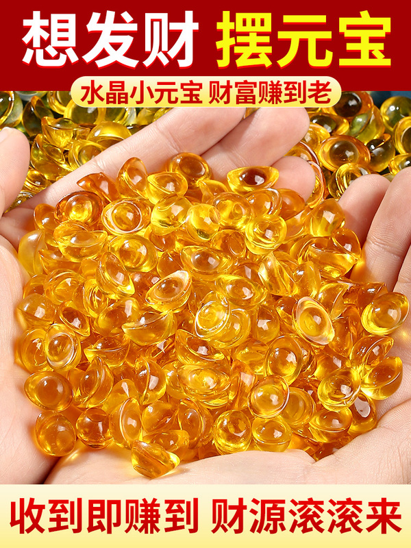 商品名称:黄水晶元宝摆件聚宝盆金元宝配件琉璃diy招财配件水晶碎石装饰品