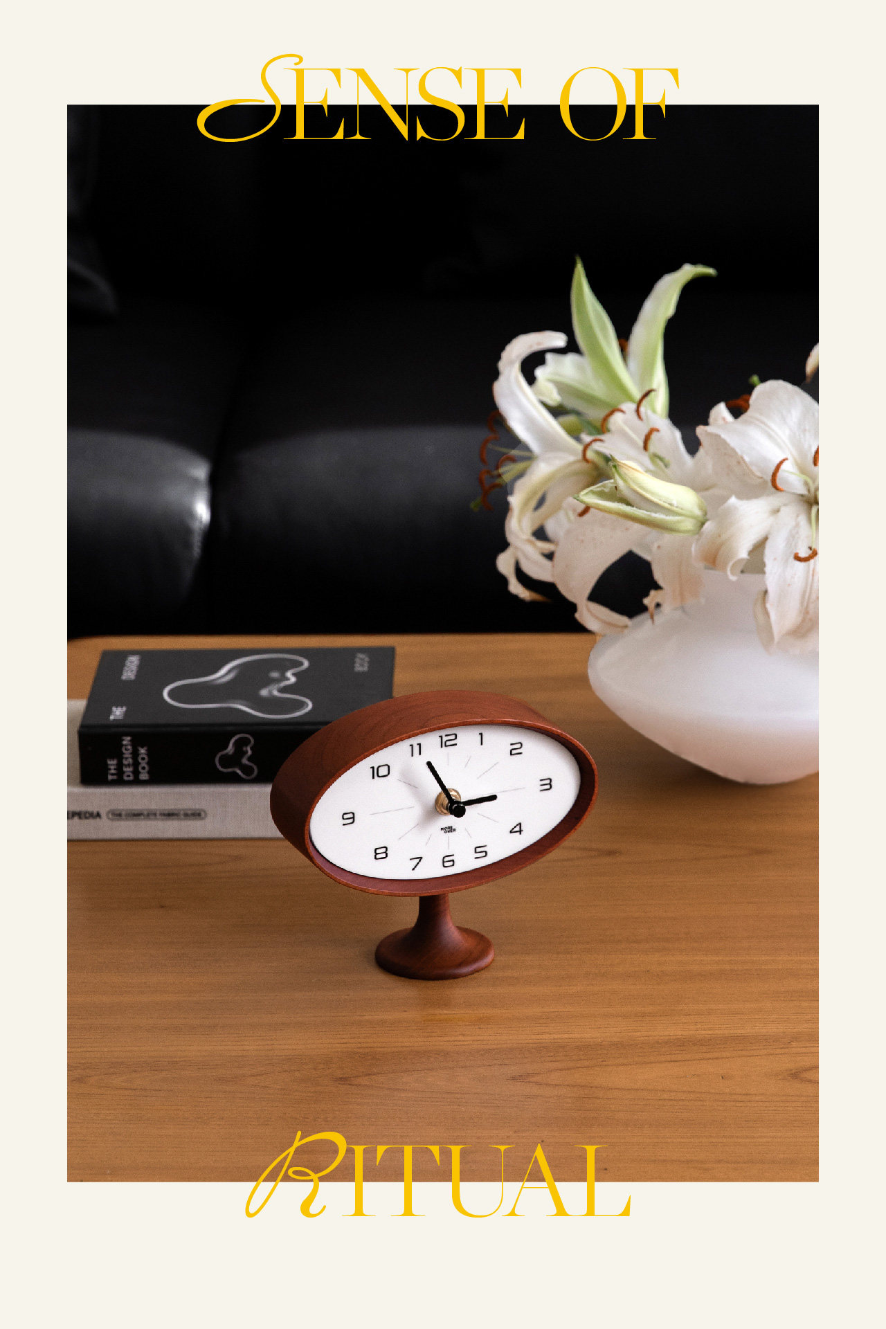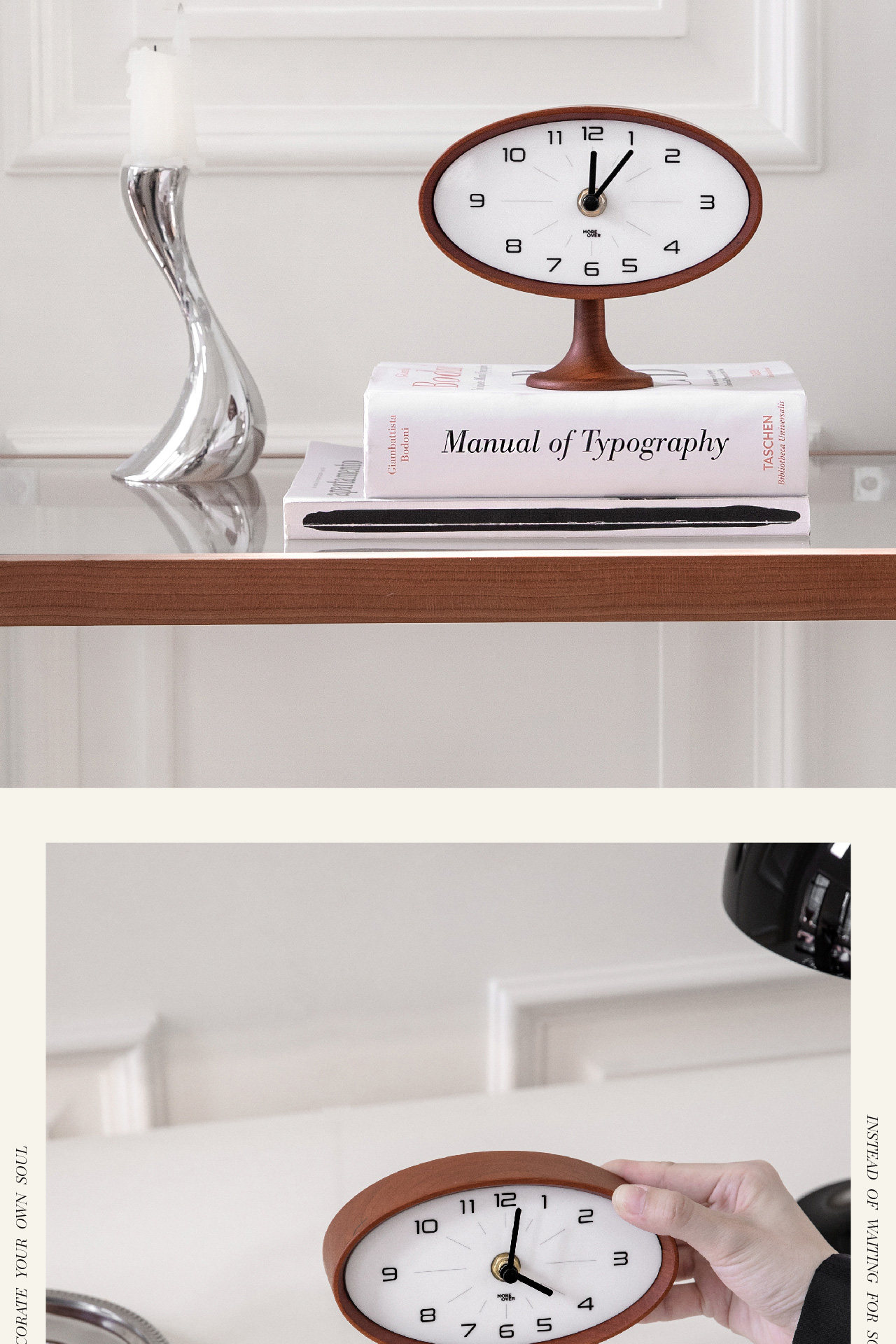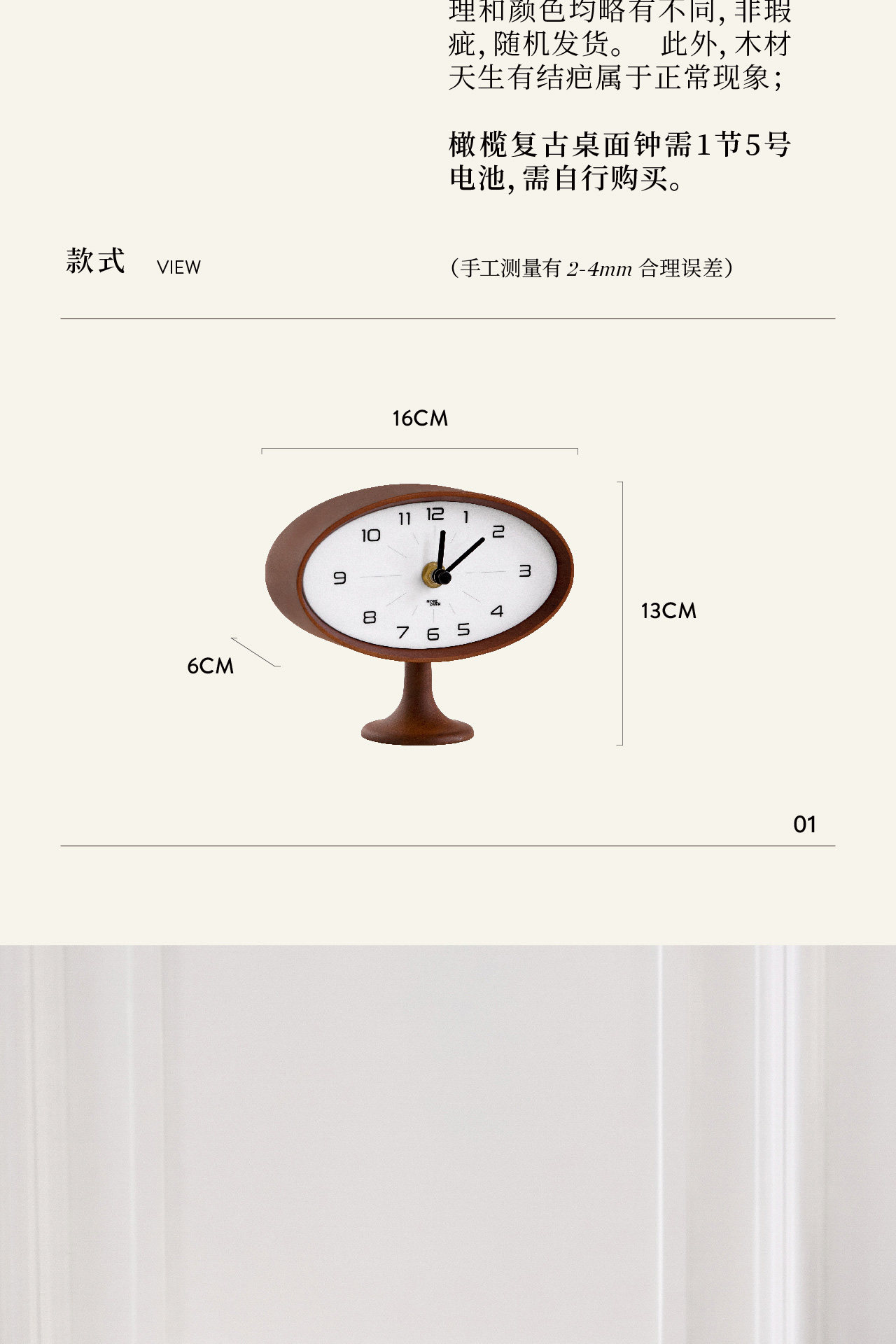 商品名称:moreover橄榄复古桌面钟客厅卧室玄关实木摆件台式轻奢家居装饰品