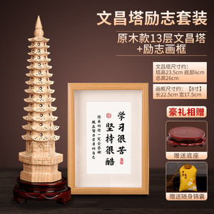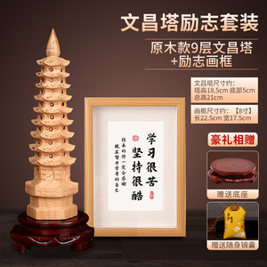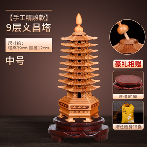 桃木文昌塔摆件纯木质笔筒十三层九13层木头的书房桌工艺品旗舰店