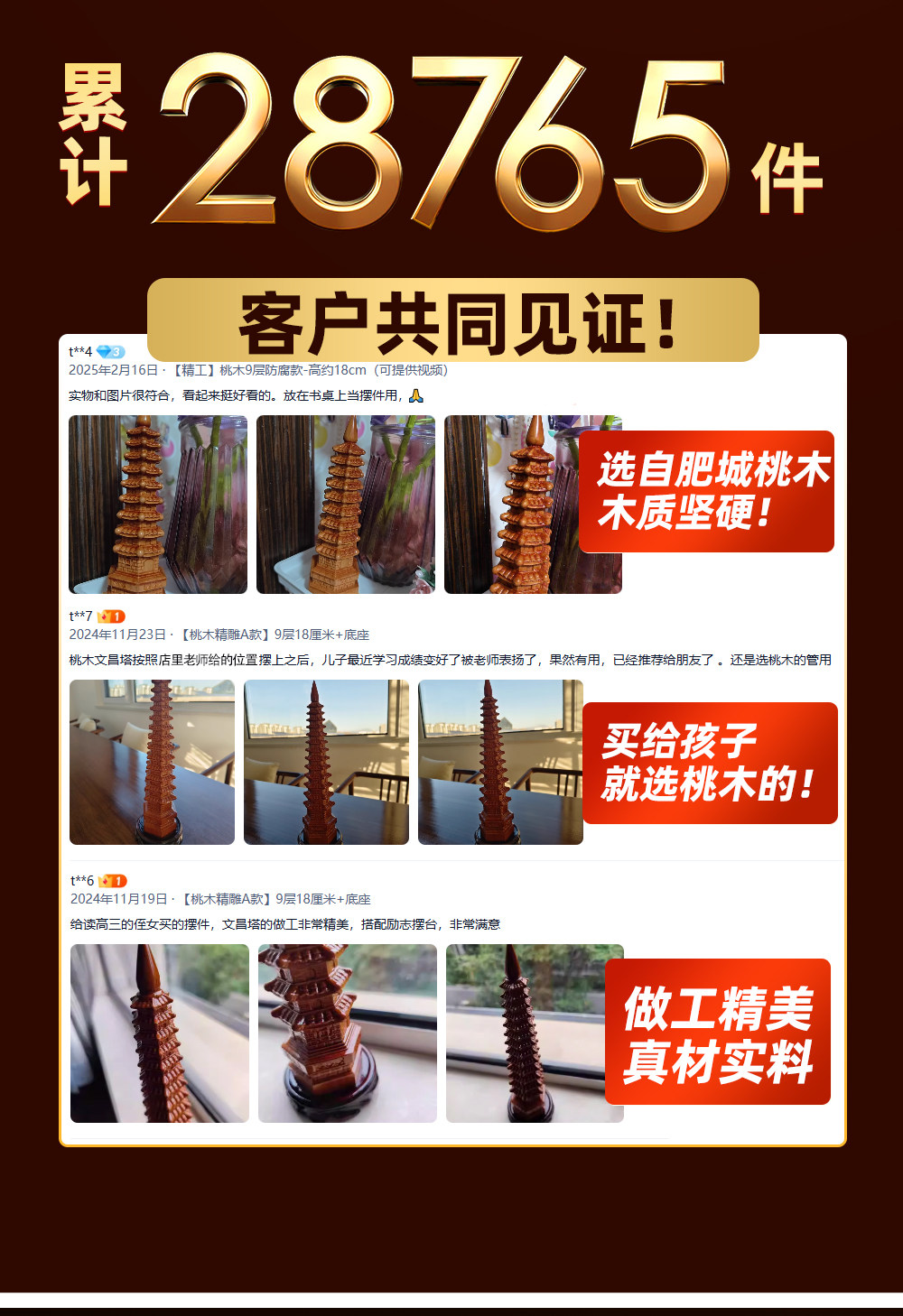 【防腐真桃木】七层高19cm搭配底座