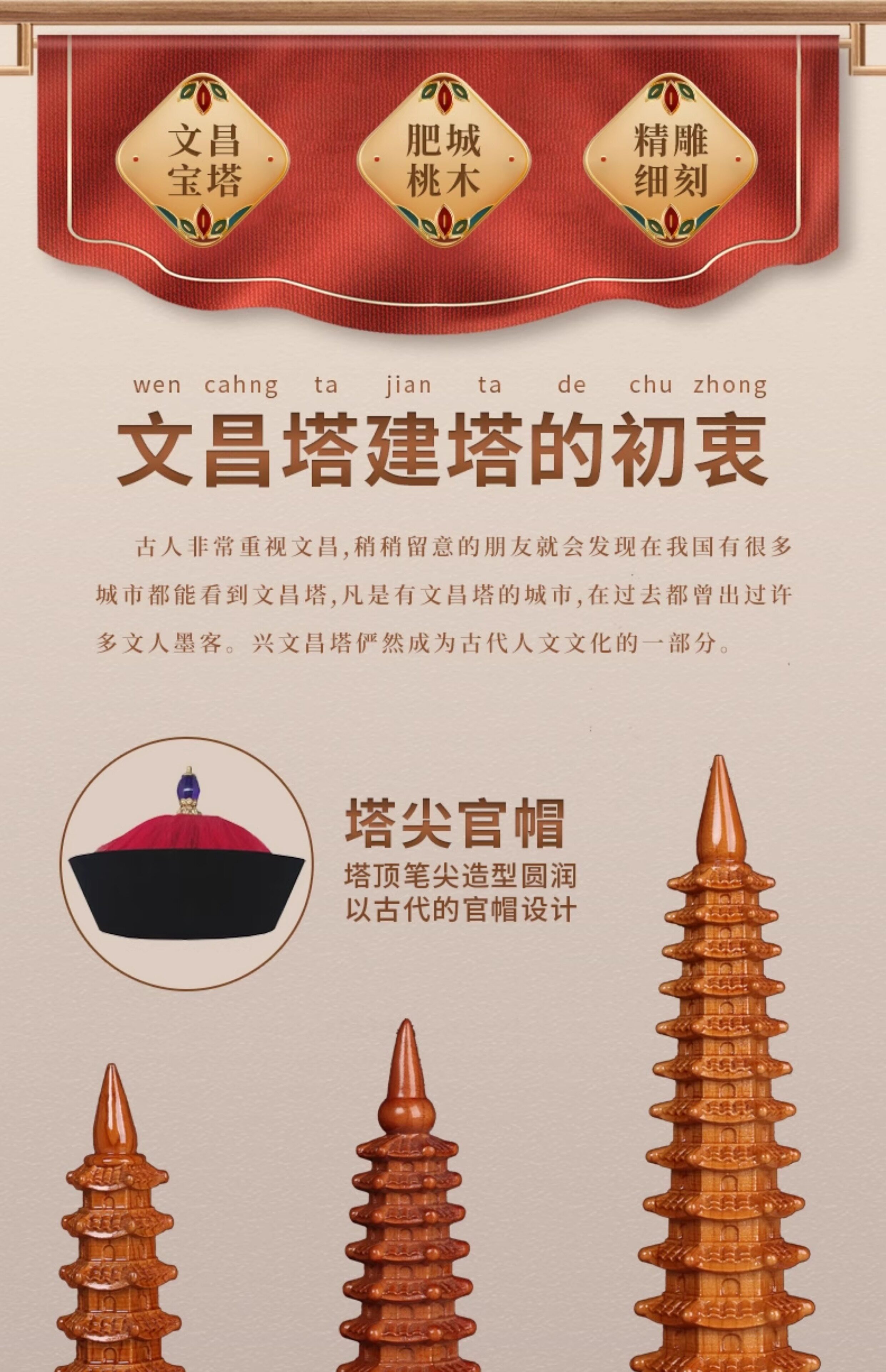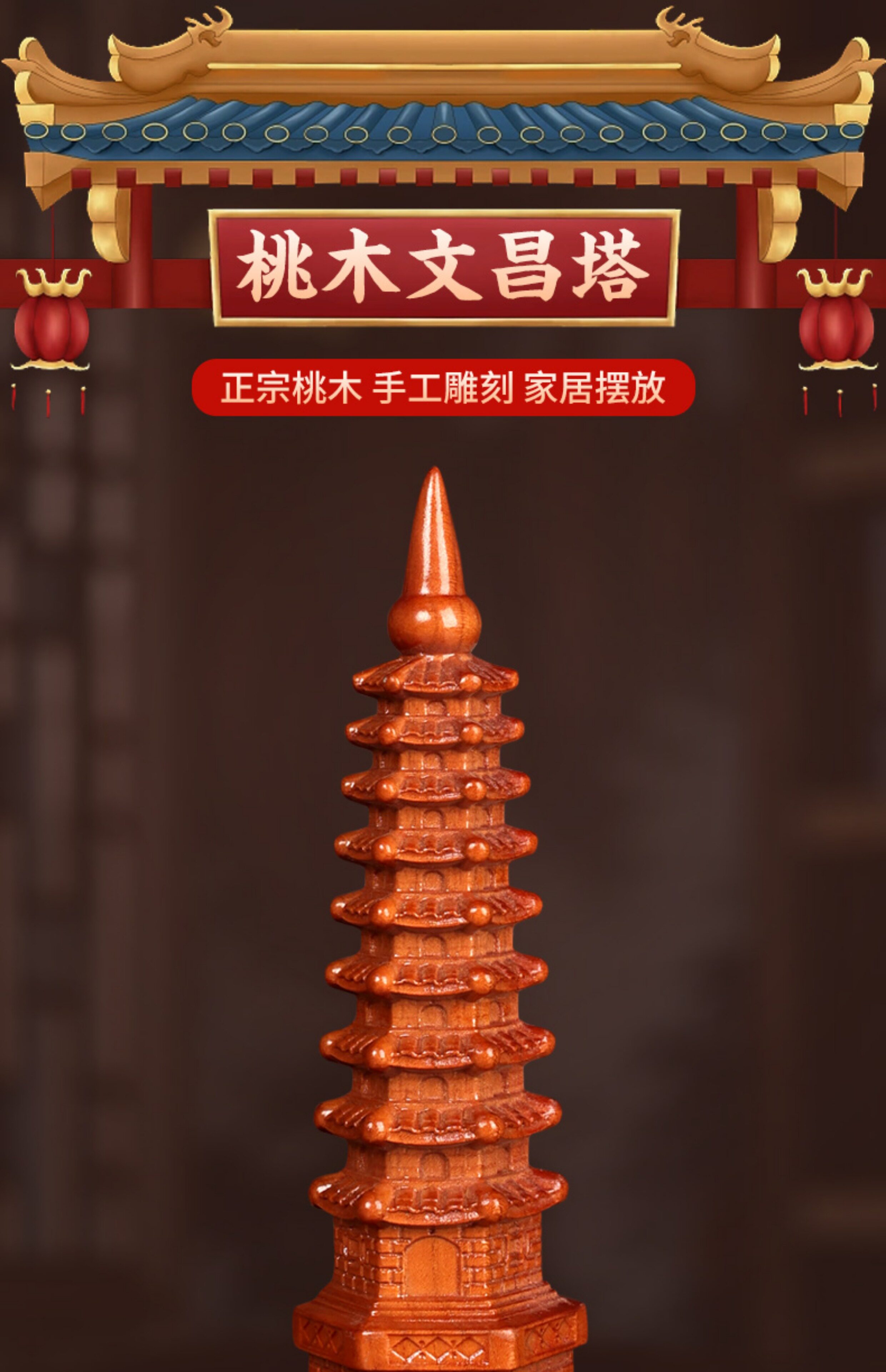 商品名称:桃木文昌塔摆件纯木质笔筒十三层九13层木头的书房桌工艺品旗舰店