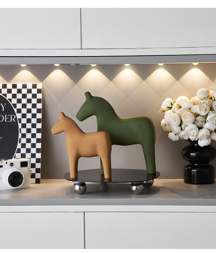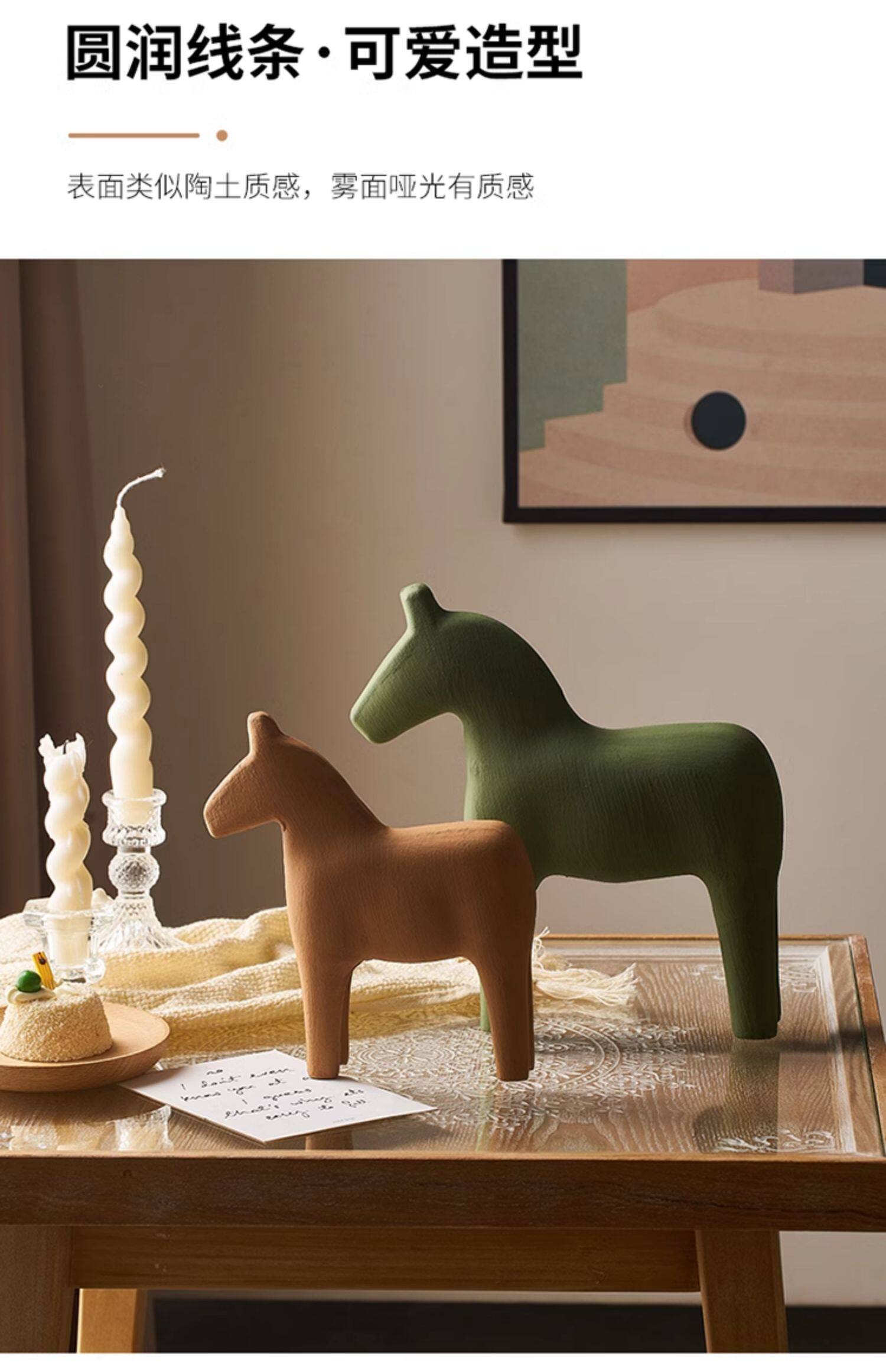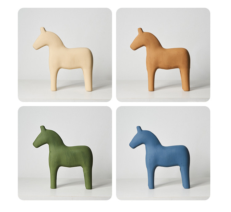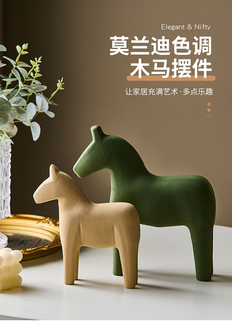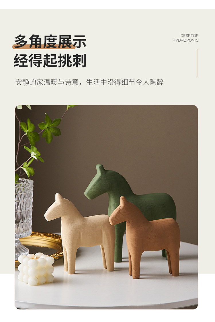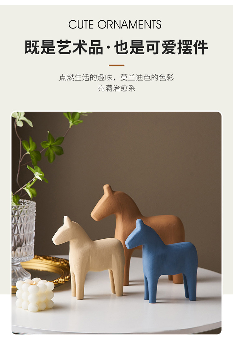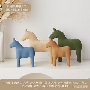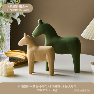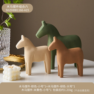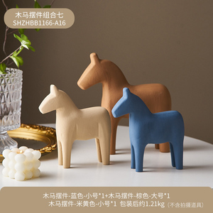 原木风文艺小木马小摆件客厅玄关电视柜家居软装饰品搭配木质书架