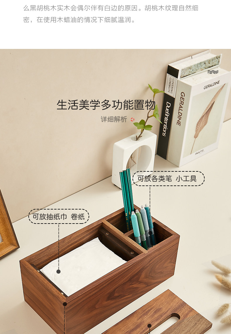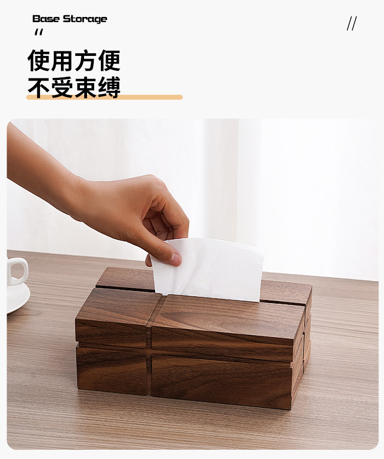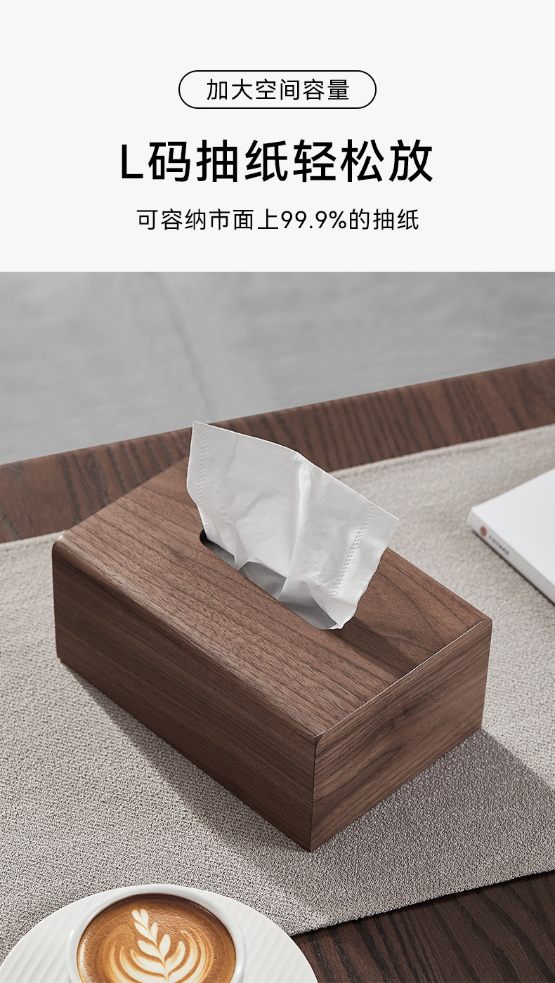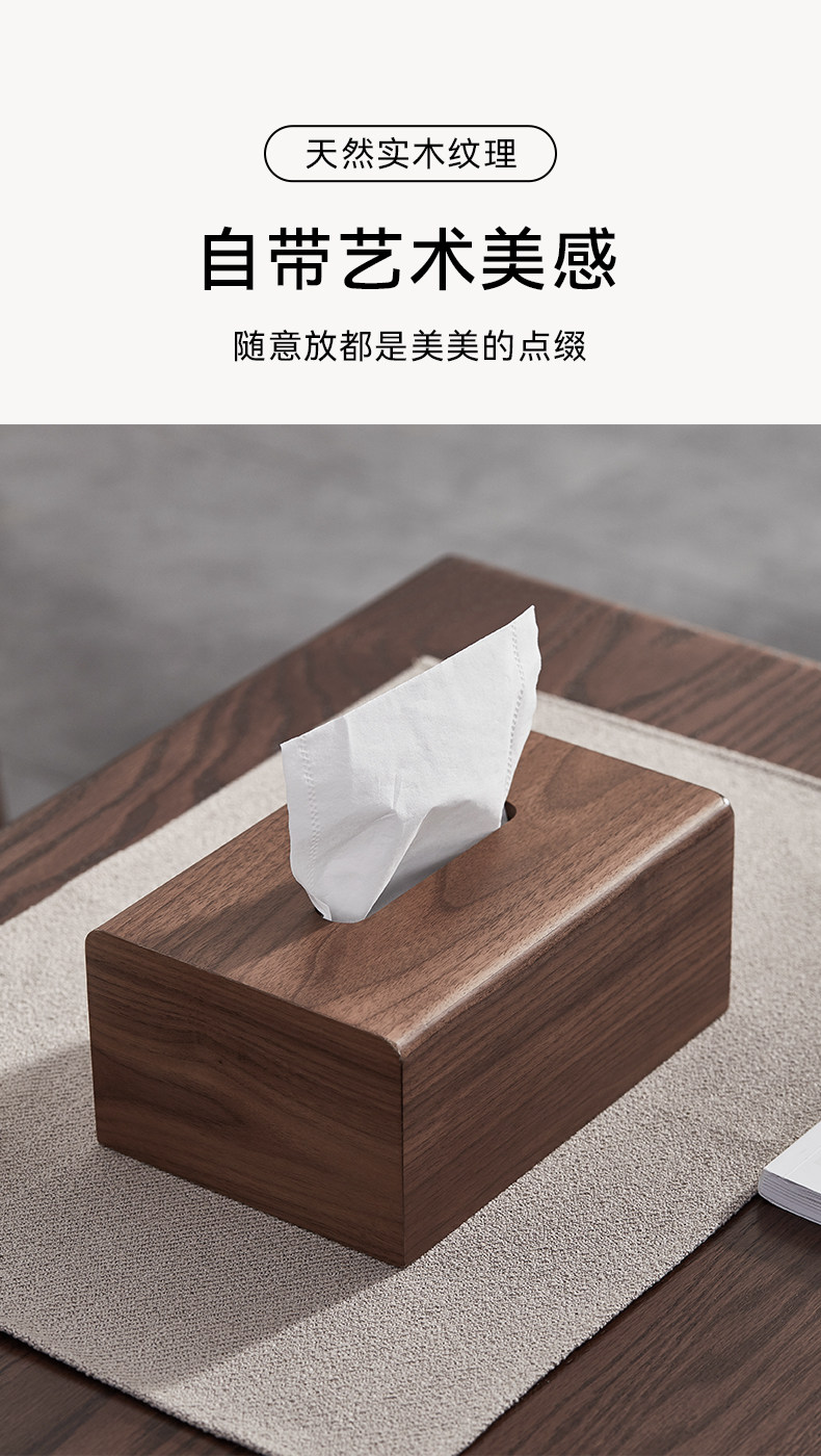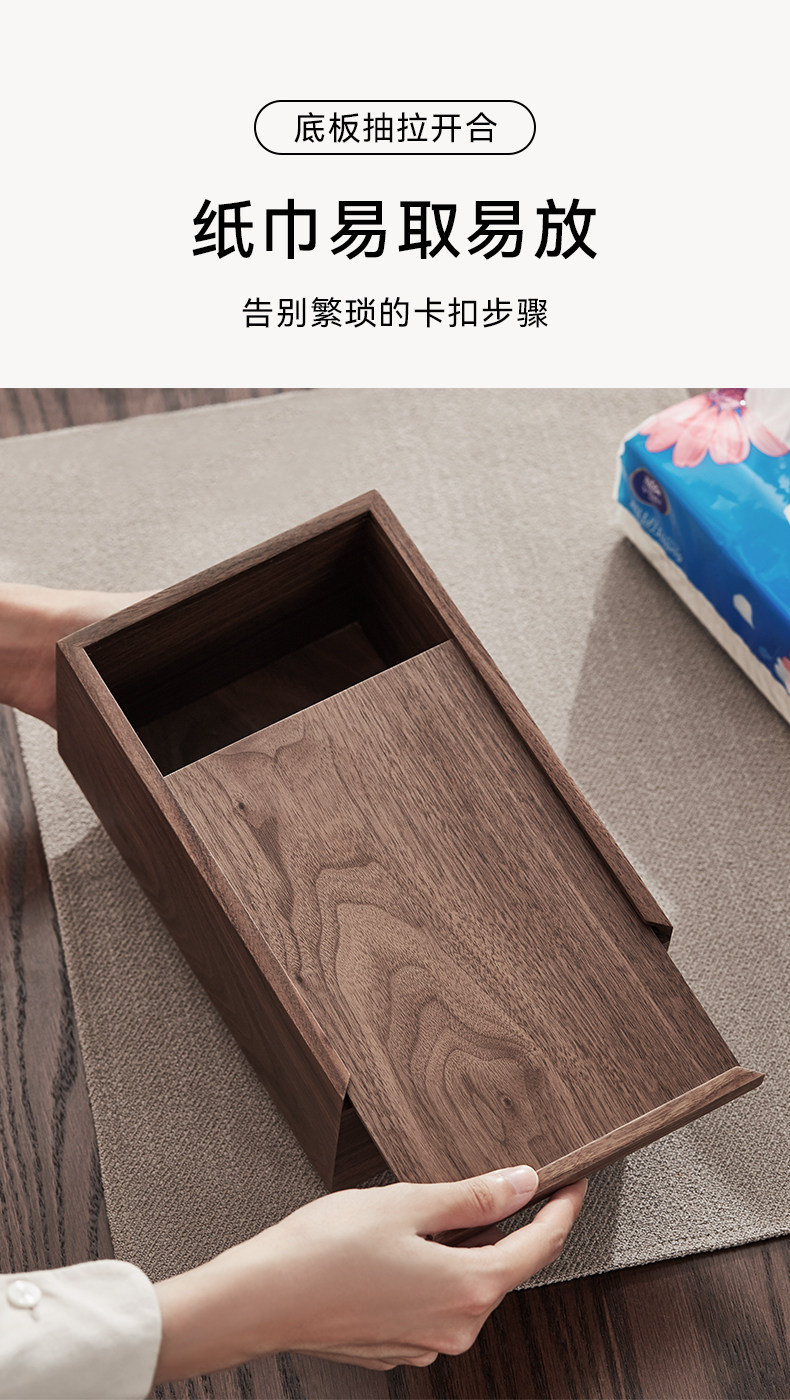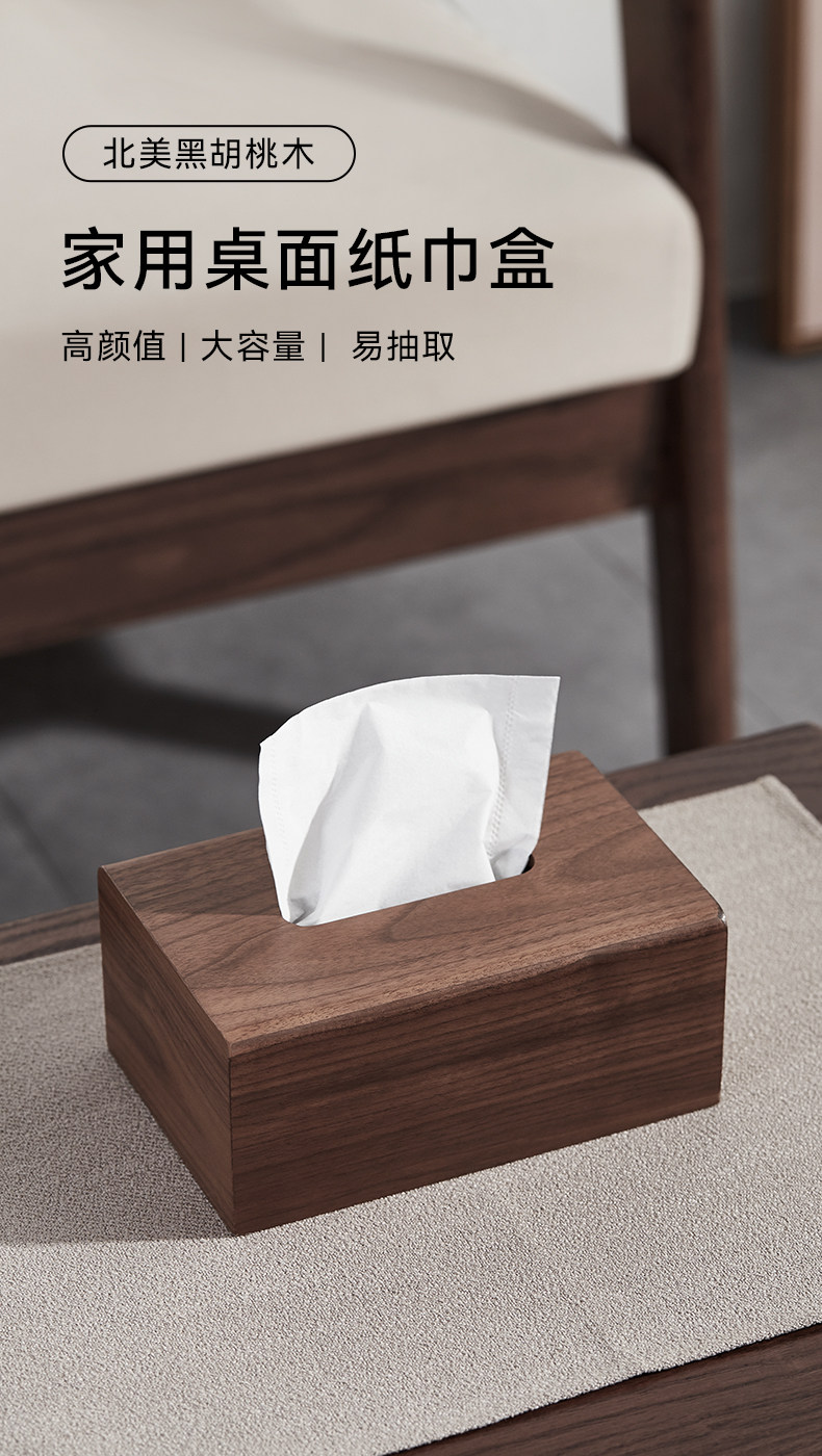 商品名称:黑胡桃木纸巾盒实木客厅纸抽盒木质收纳抽轻奢家用餐巾纸盒定logo