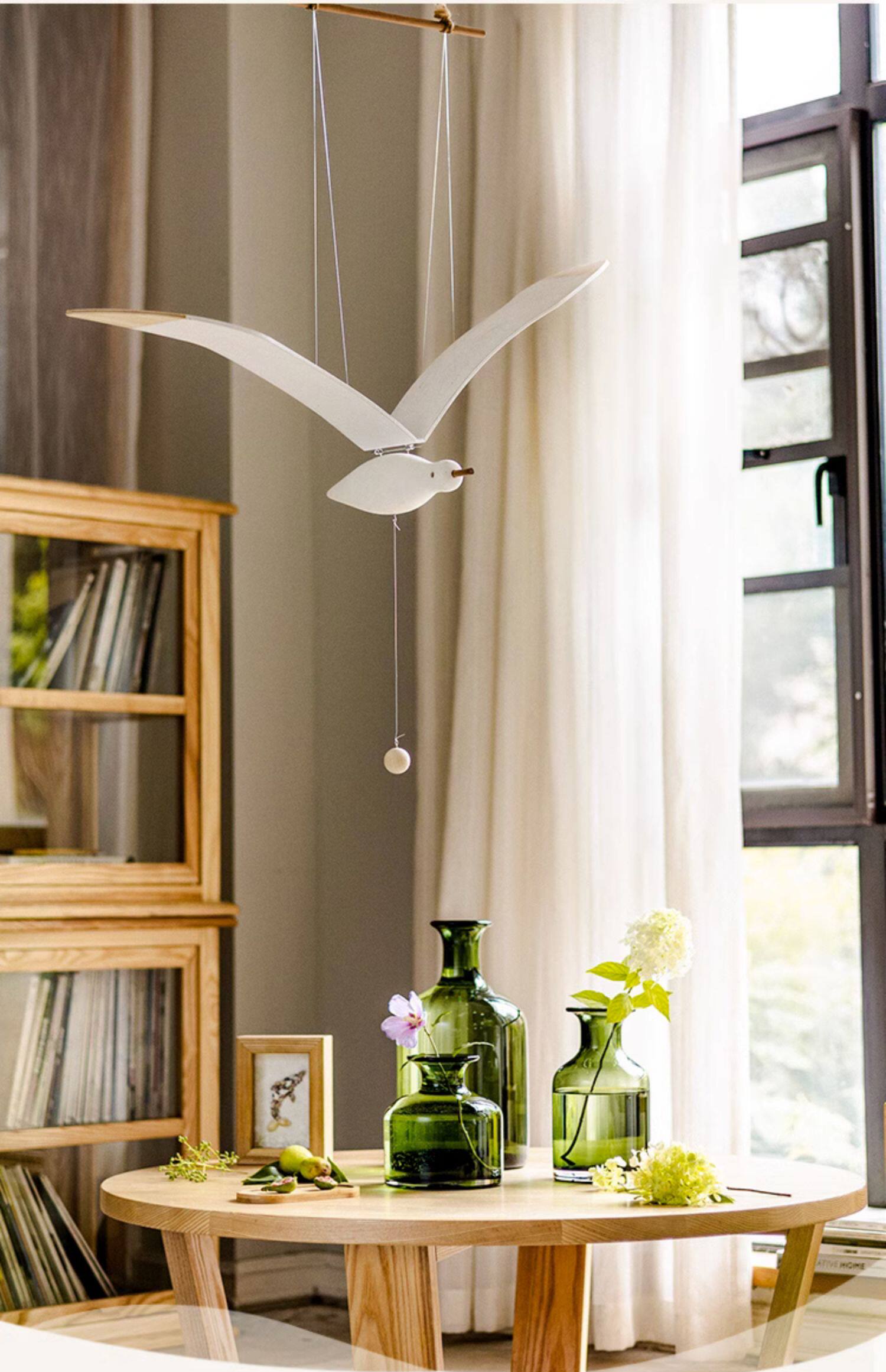 会飞的海鸥客厅阳台飘窗空中悬挂吊饰儿童房艺术创意木质飞鸟挂饰