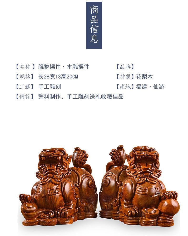 商品名称:花梨木雕貔貅摆件实木公母一对办公室客厅风水装饰工艺品开业送礼