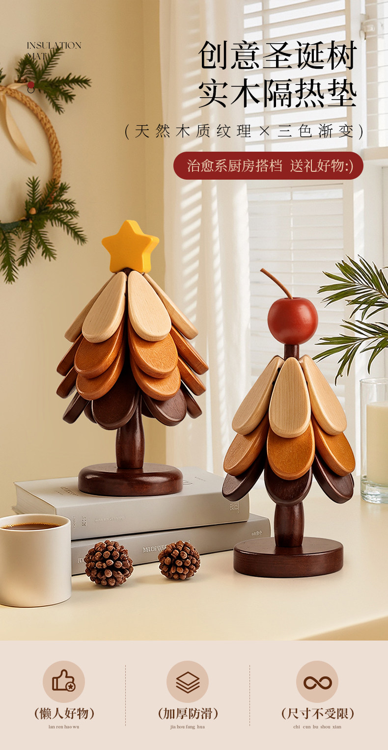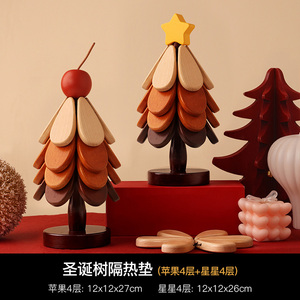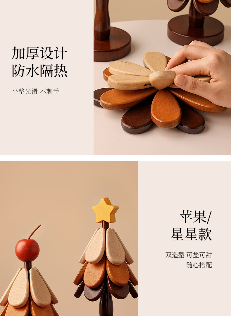 【苹果款】圣诞树隔热垫四层【全实木材质 防烫耐高温】