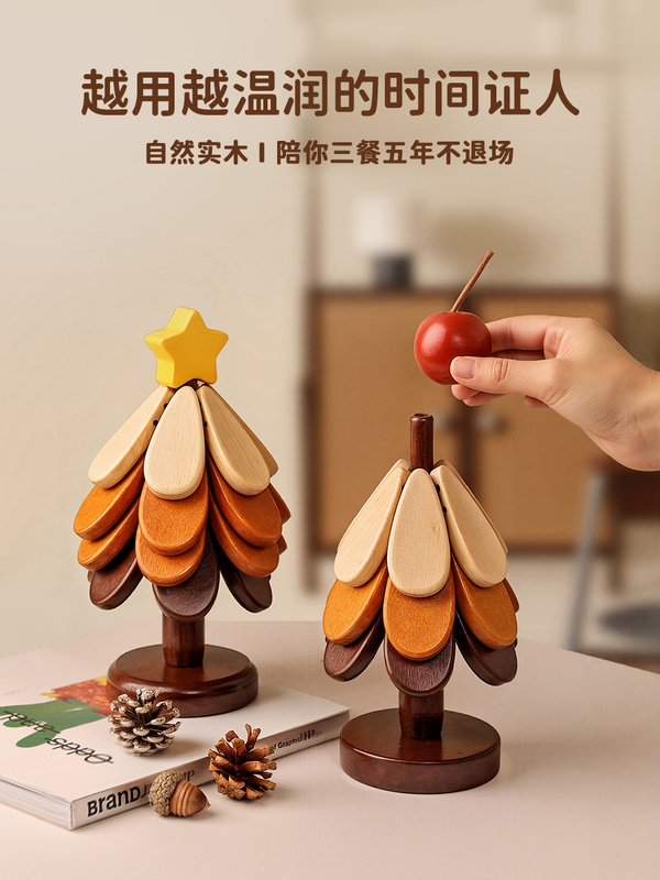 贝汉美圣诞树隔热垫餐桌高级感摆件创意实木防烫锅垫折叠杯垫碗垫
