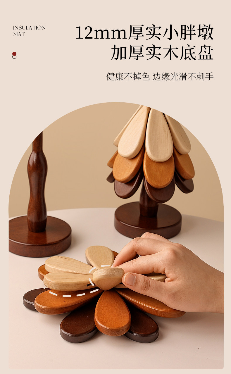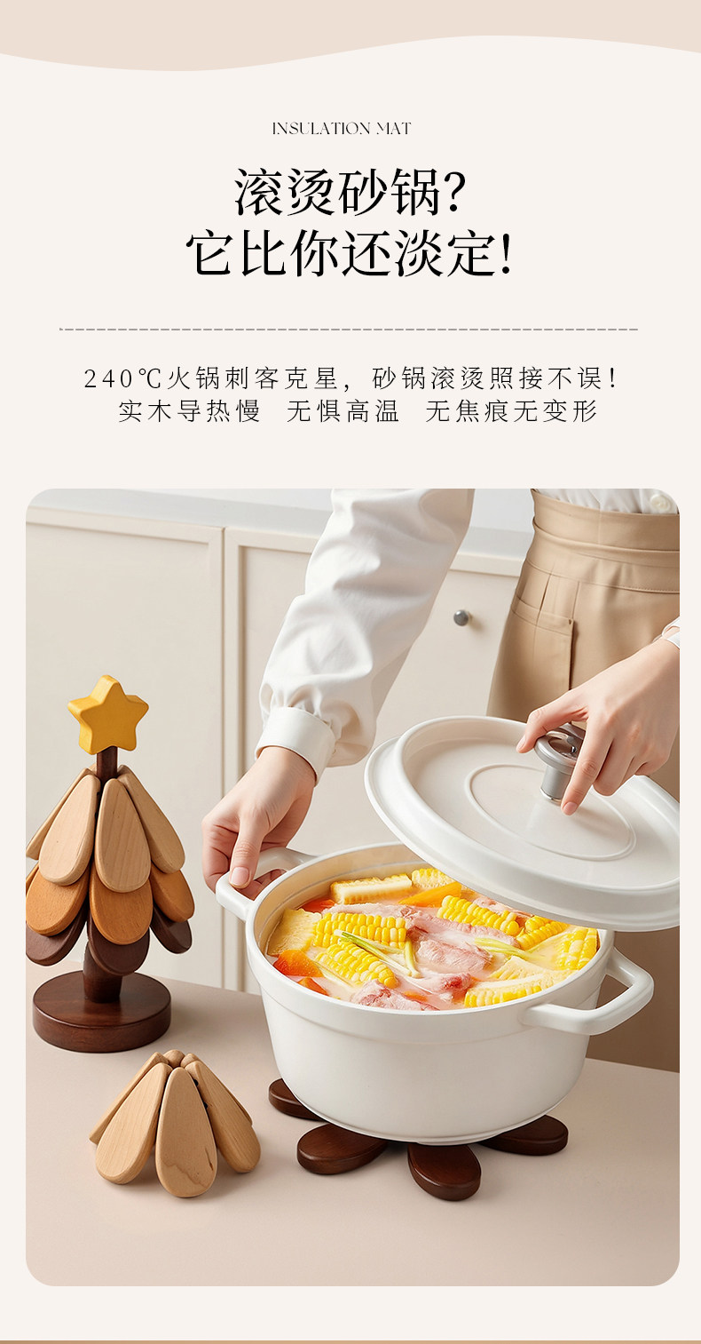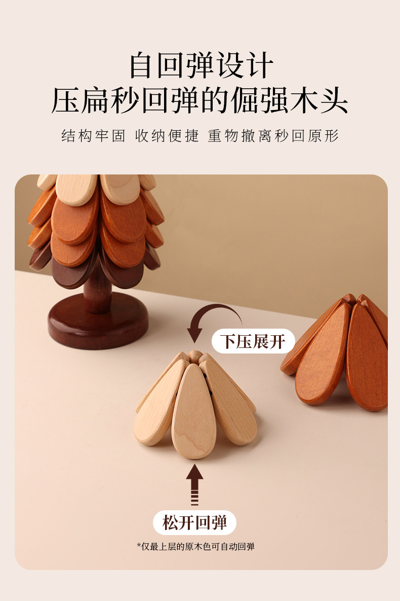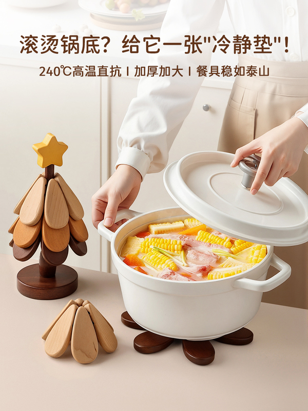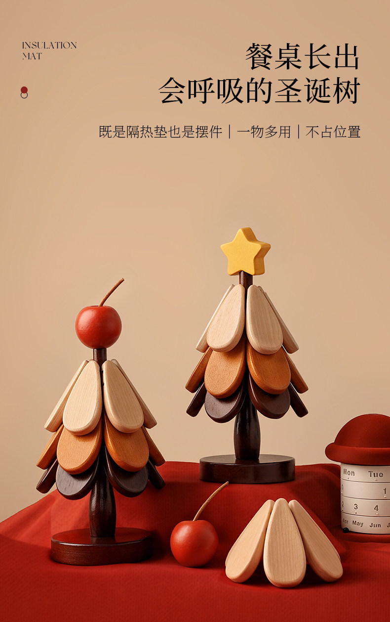 商品名称:贝汉美圣诞树隔热垫餐桌高级感摆件创意实木防烫锅垫折叠杯垫碗垫