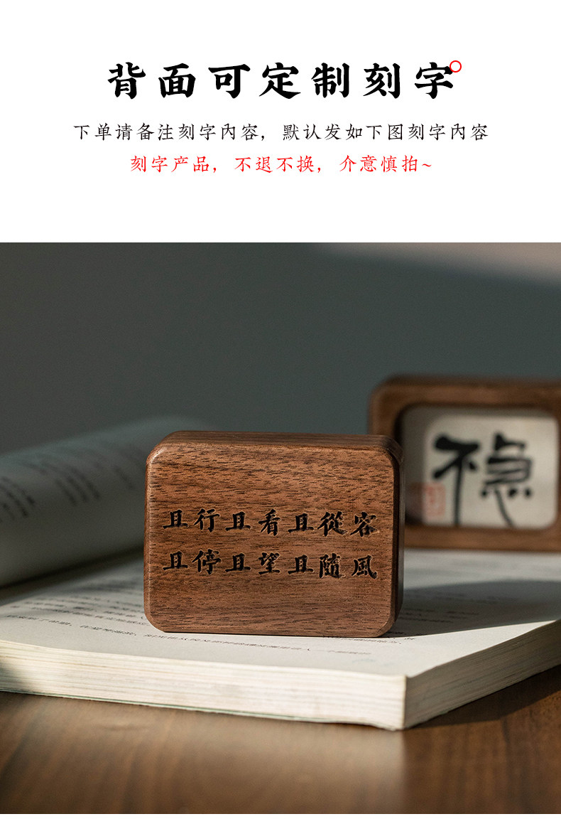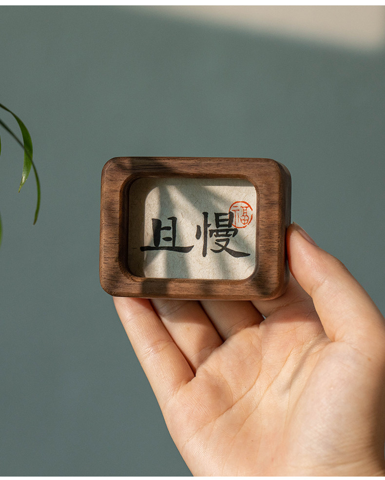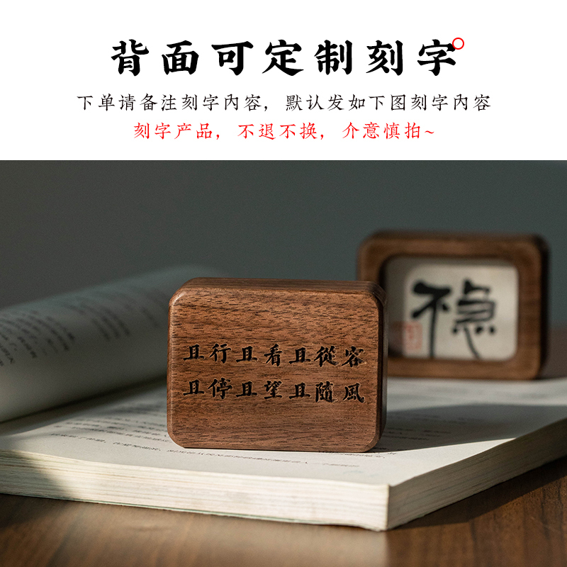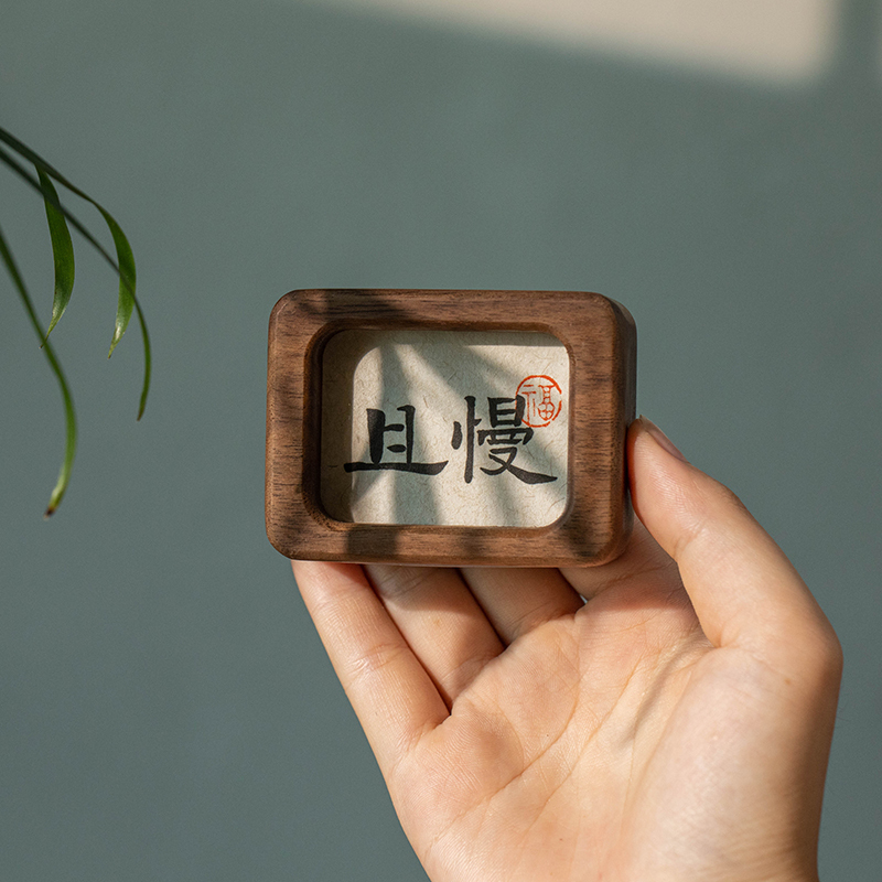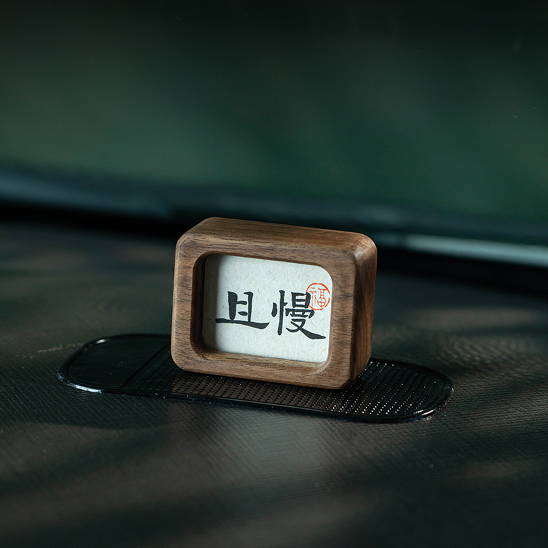 商品名称:胡桃木书法不急且慢情绪稳定小摆件汽车车内家居办公室治愈摆件