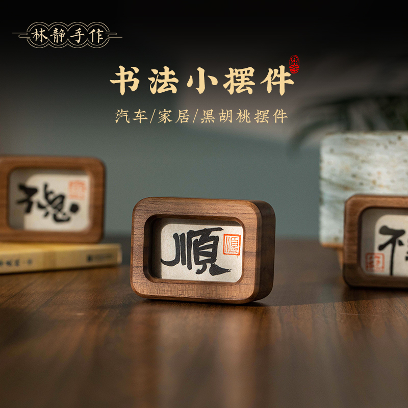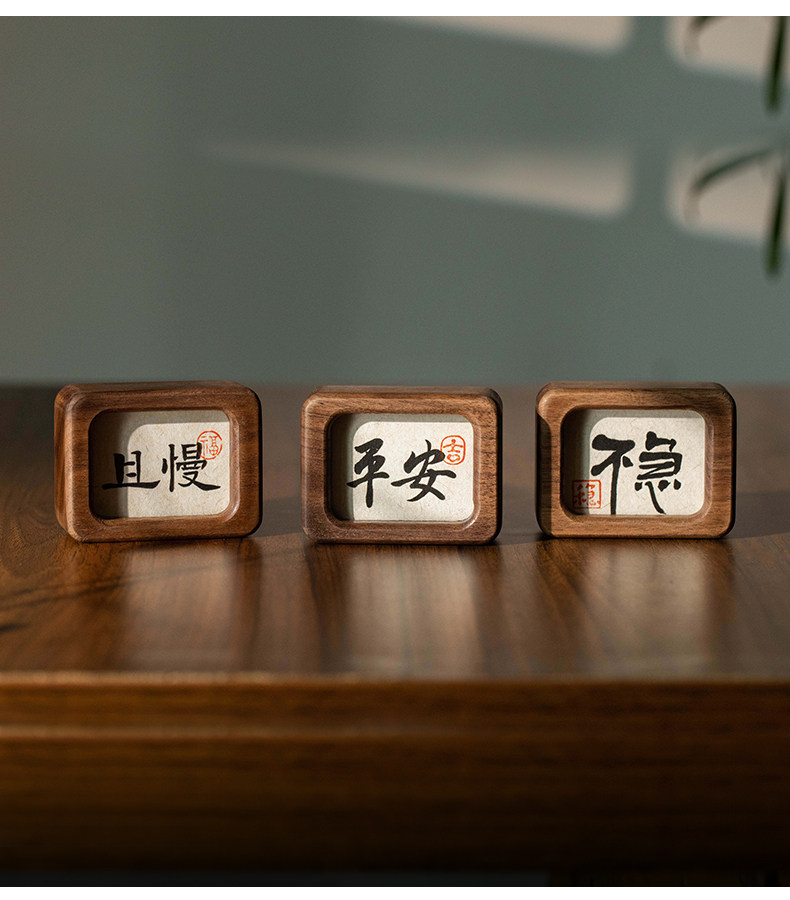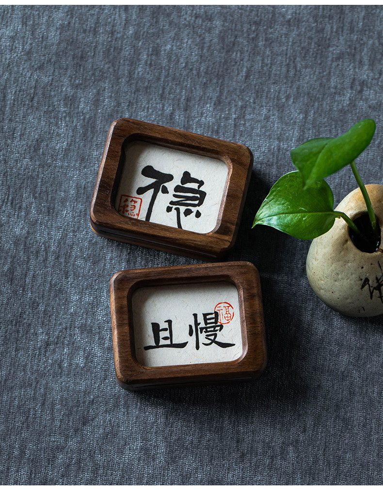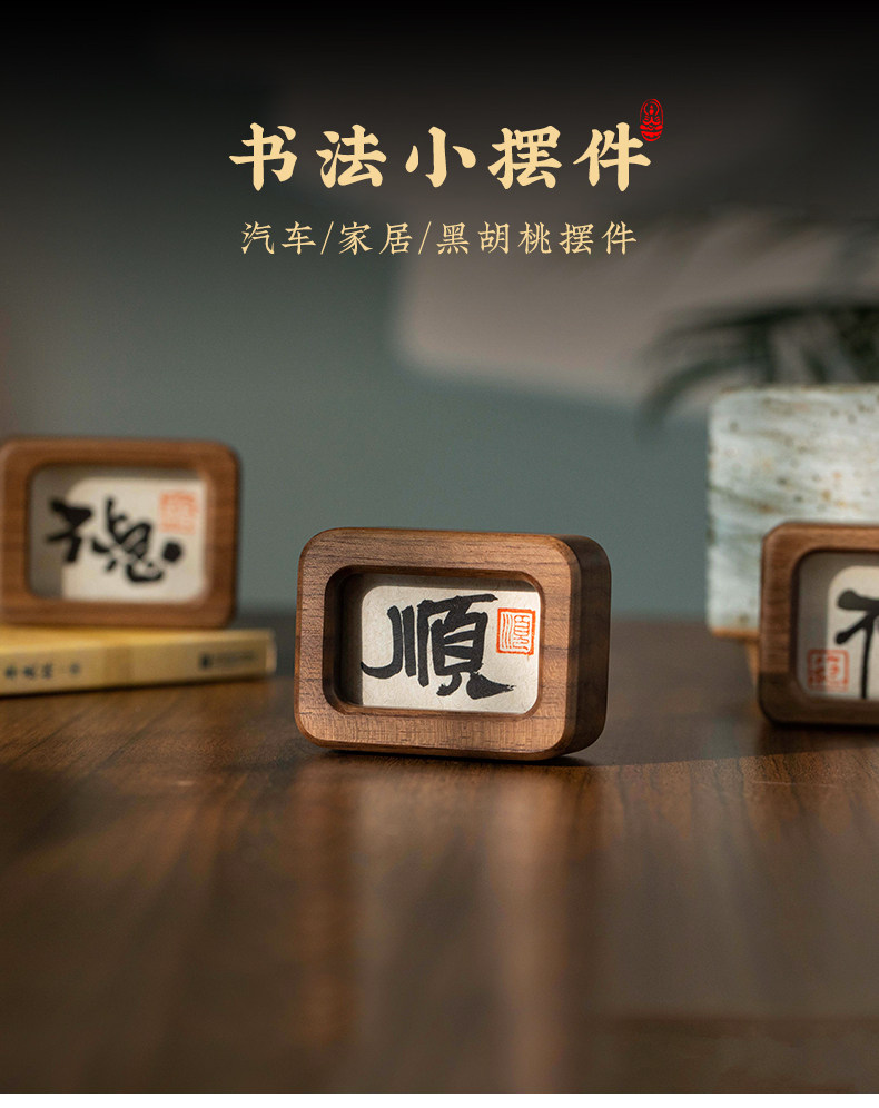 商品名称:胡桃木书法不急且慢情绪稳定小摆件汽车车内家居办公室治愈摆件