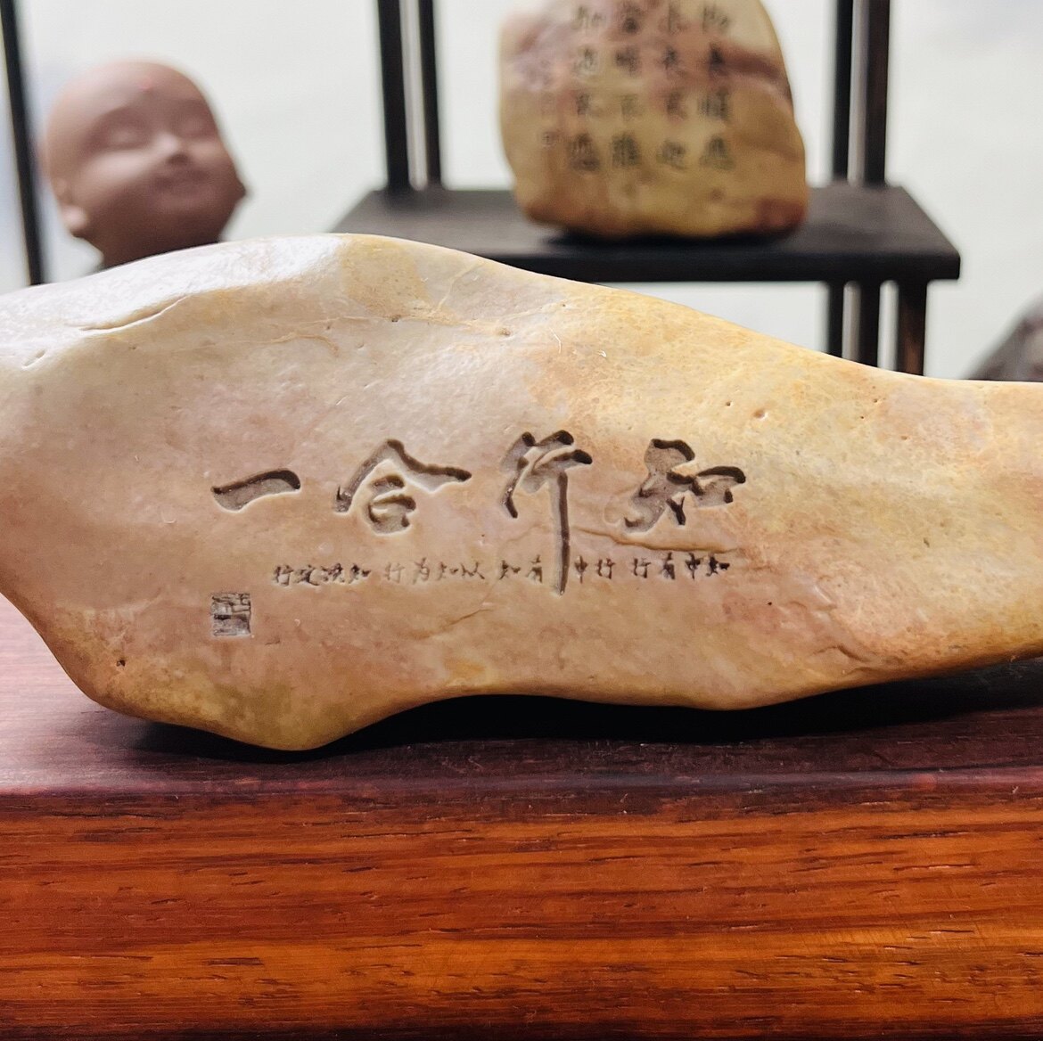 新疆天然泥石刻字,盆景茶桌摆件,办公室桌摆, 题材一致石型随机