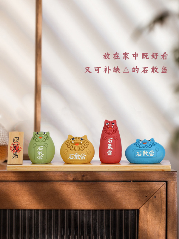 【红】泰山石敢当喜狮-梯形底座款