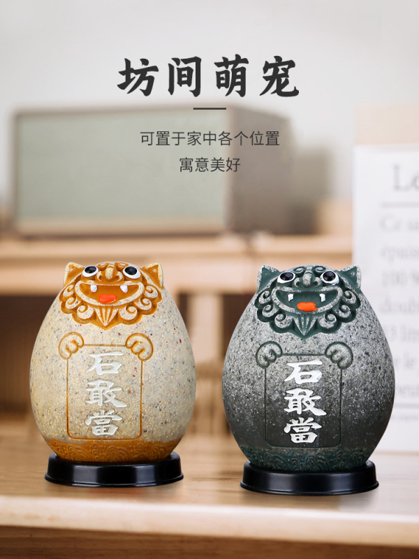 石敢当泰山正宗靠山石头摆件宅室内外办公室桌面小狮子文创纪念品