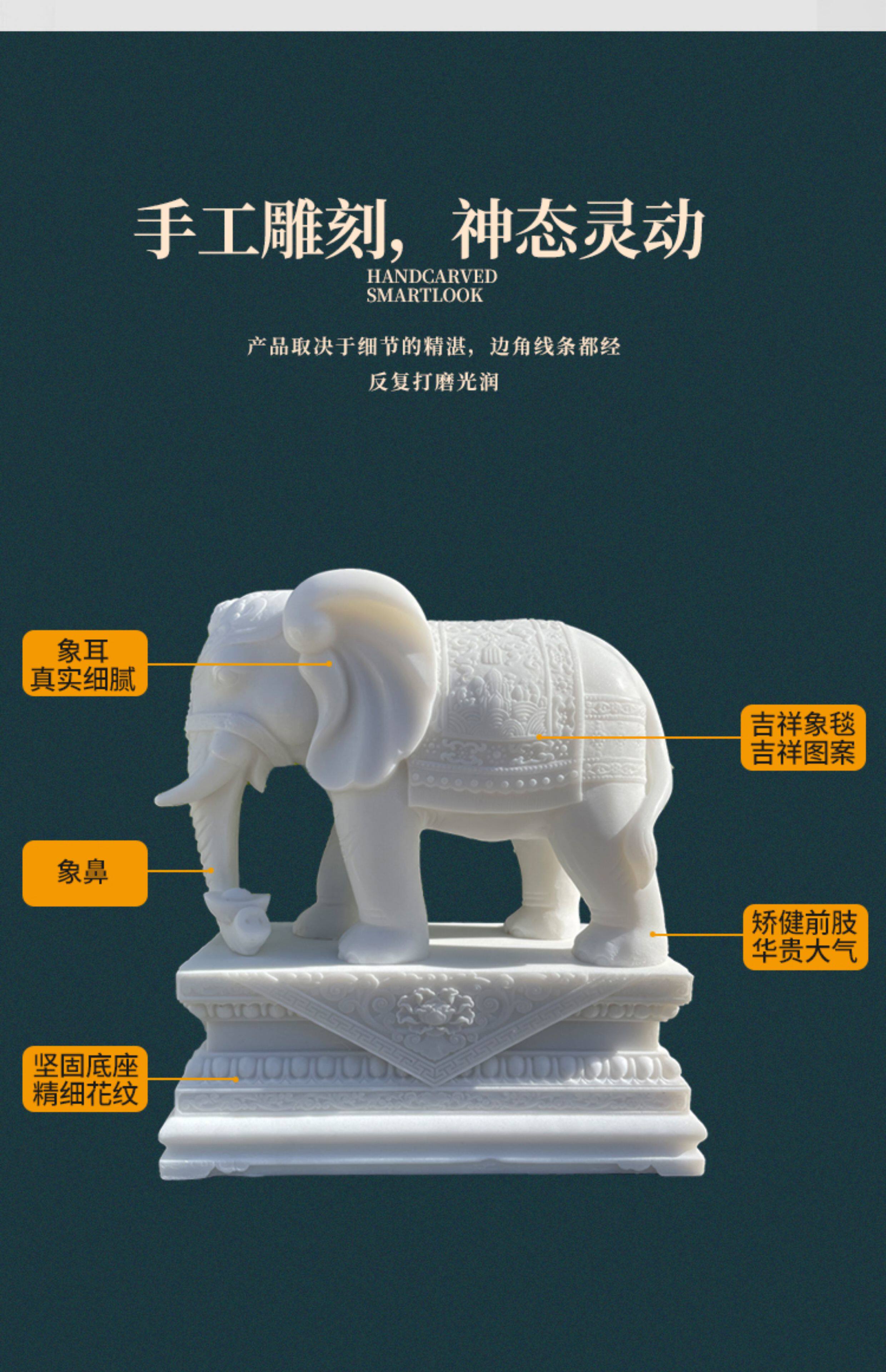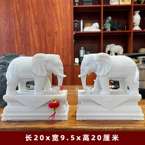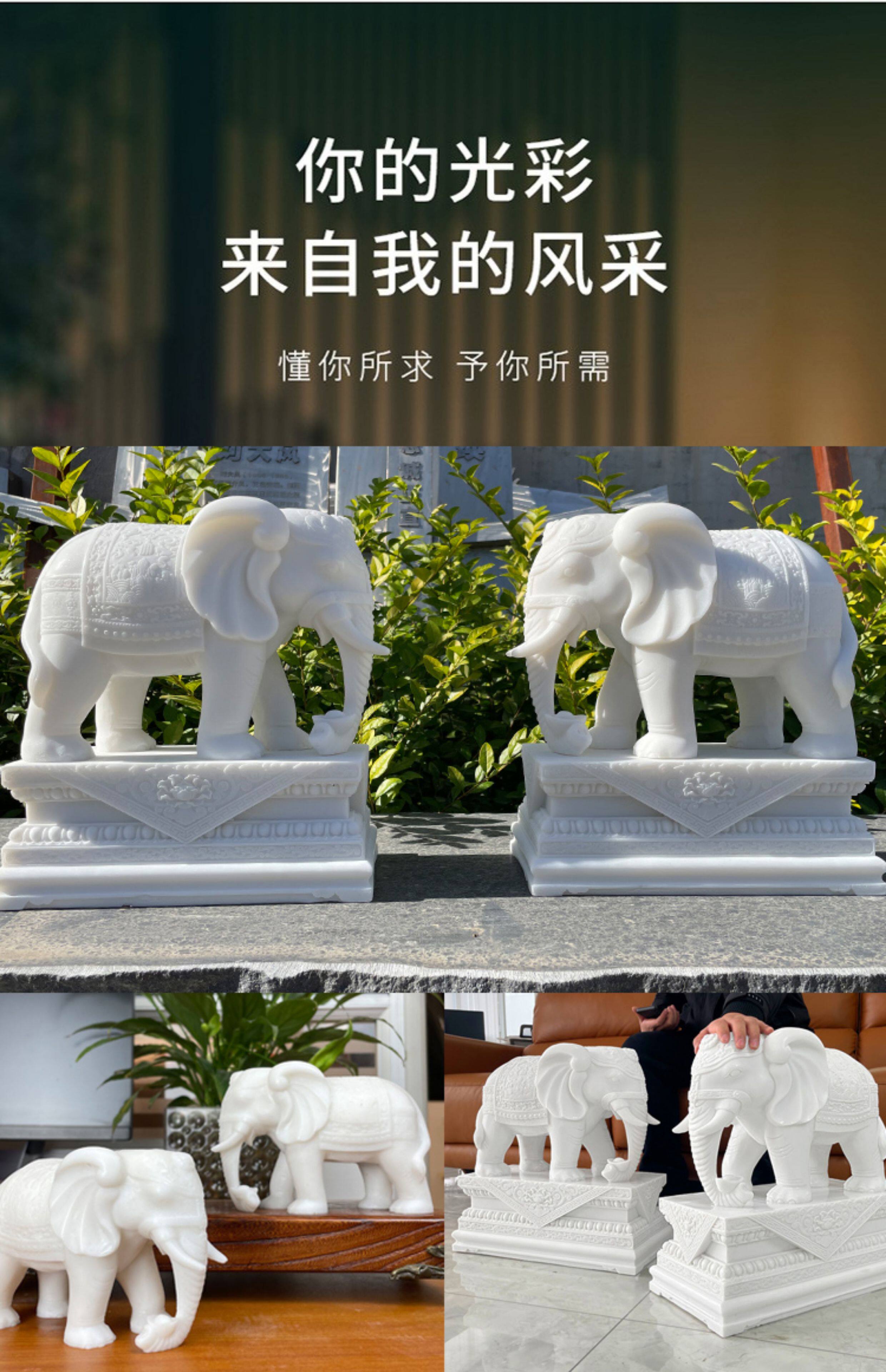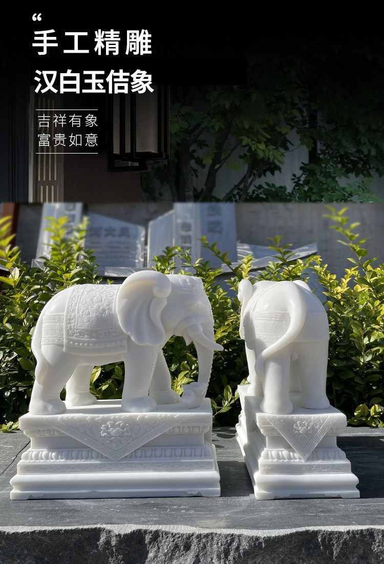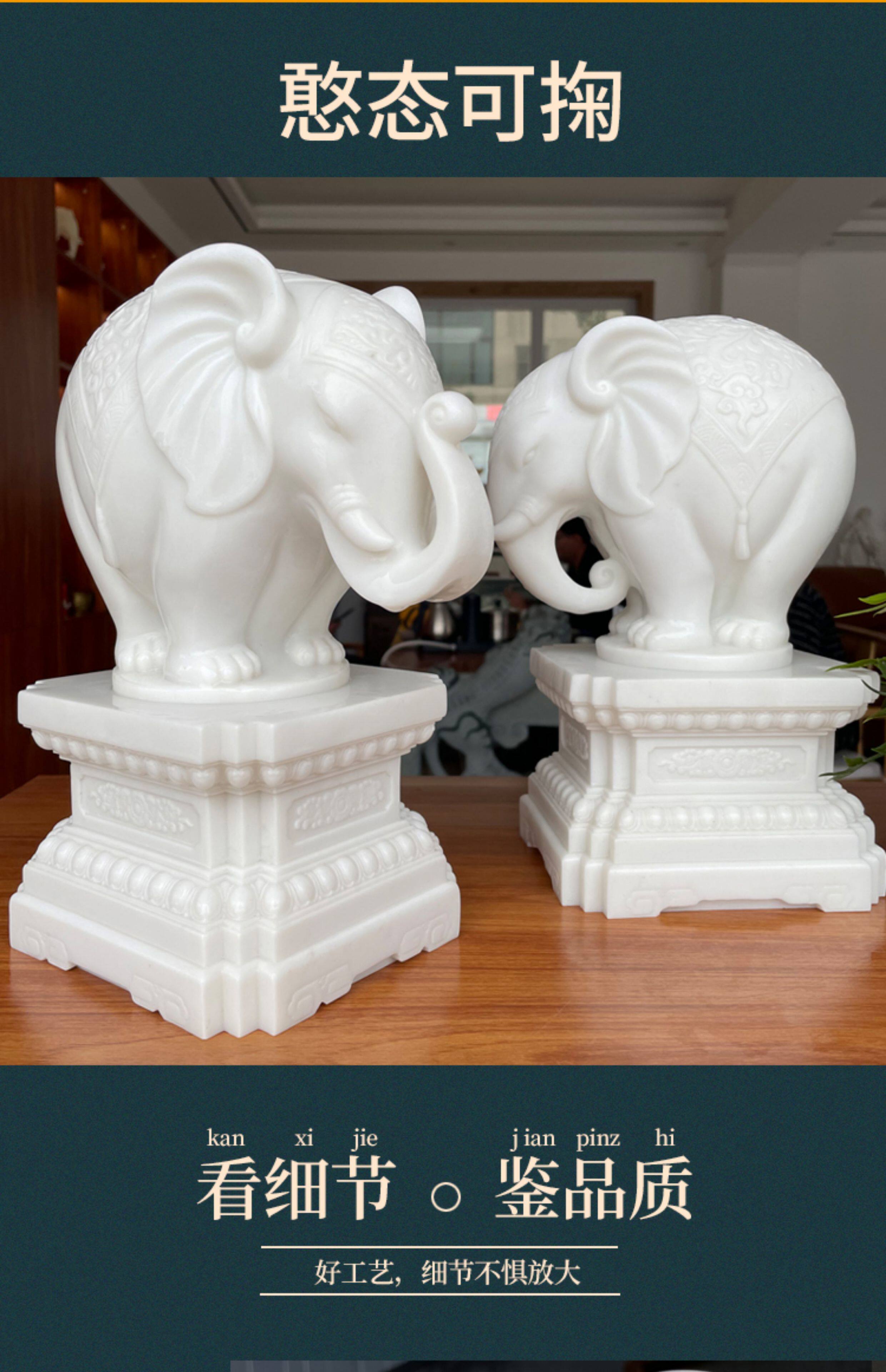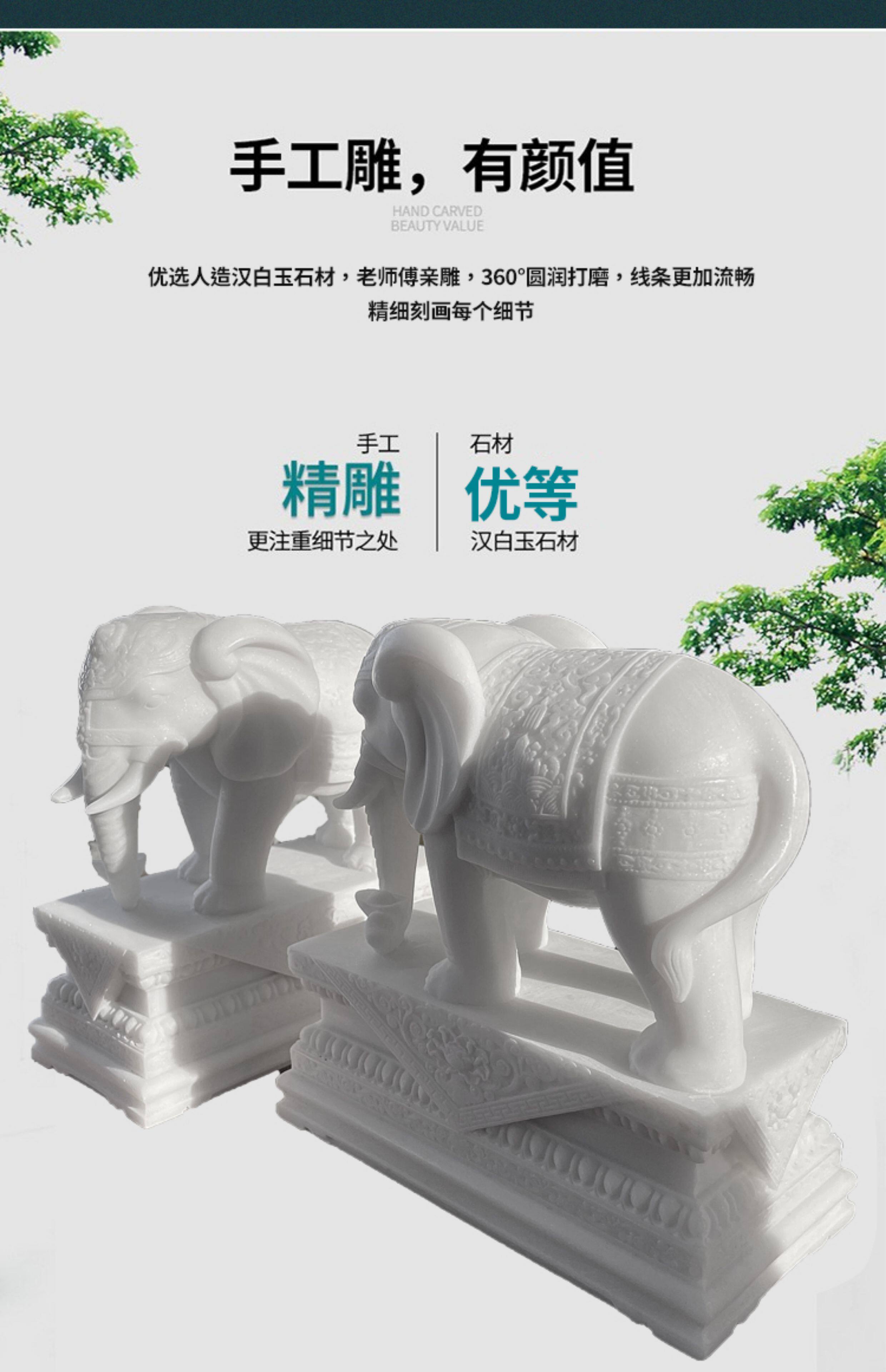 商品名称:汉白玉石雕大象摆件一对客厅招财办公桌玄关酒柜门口吸水吸财石象
