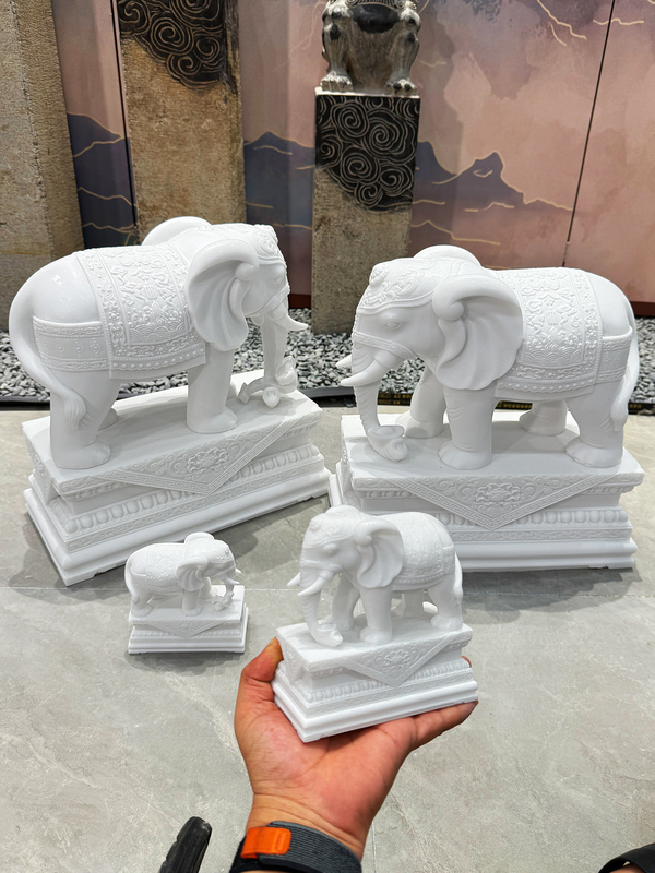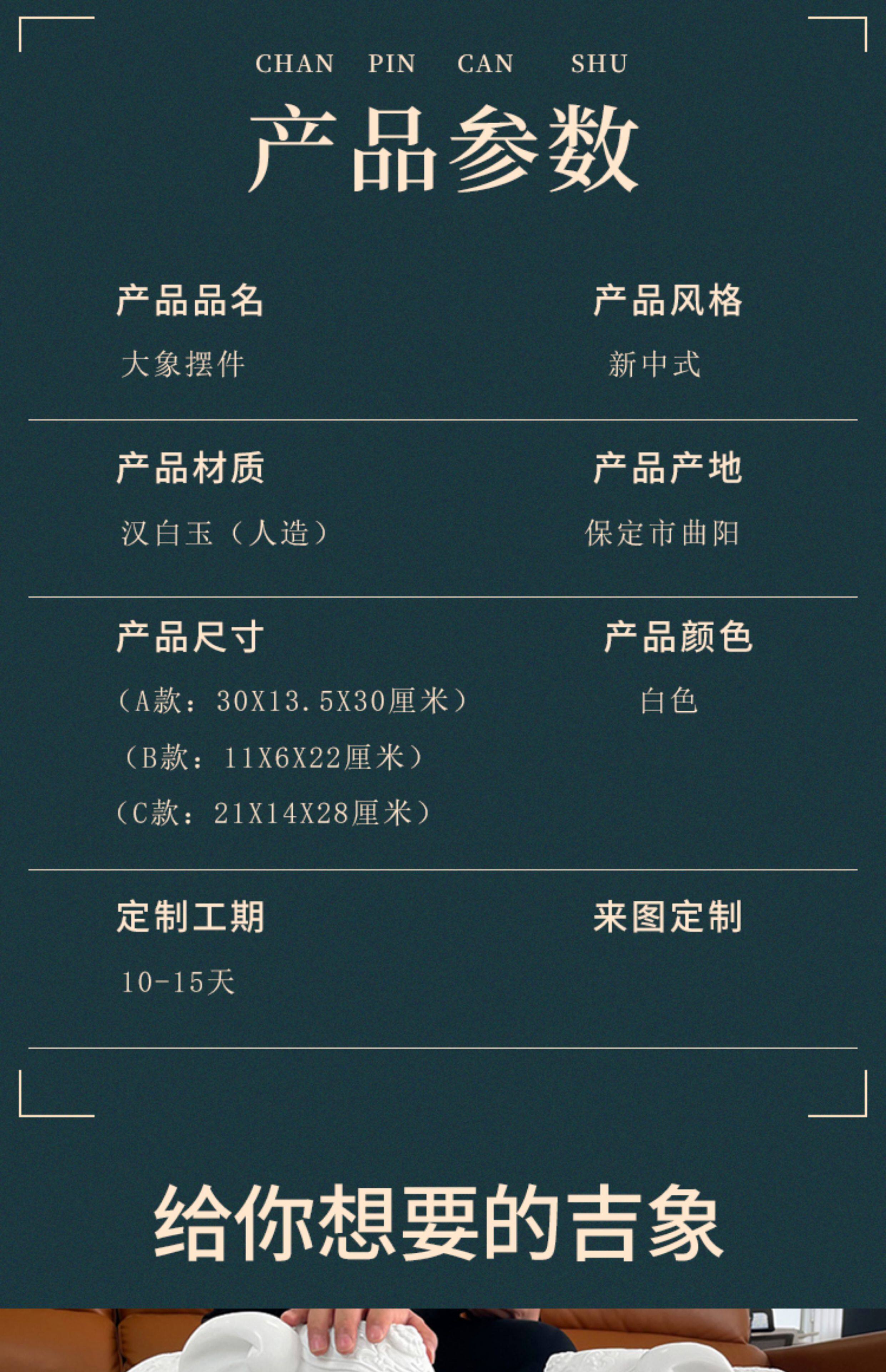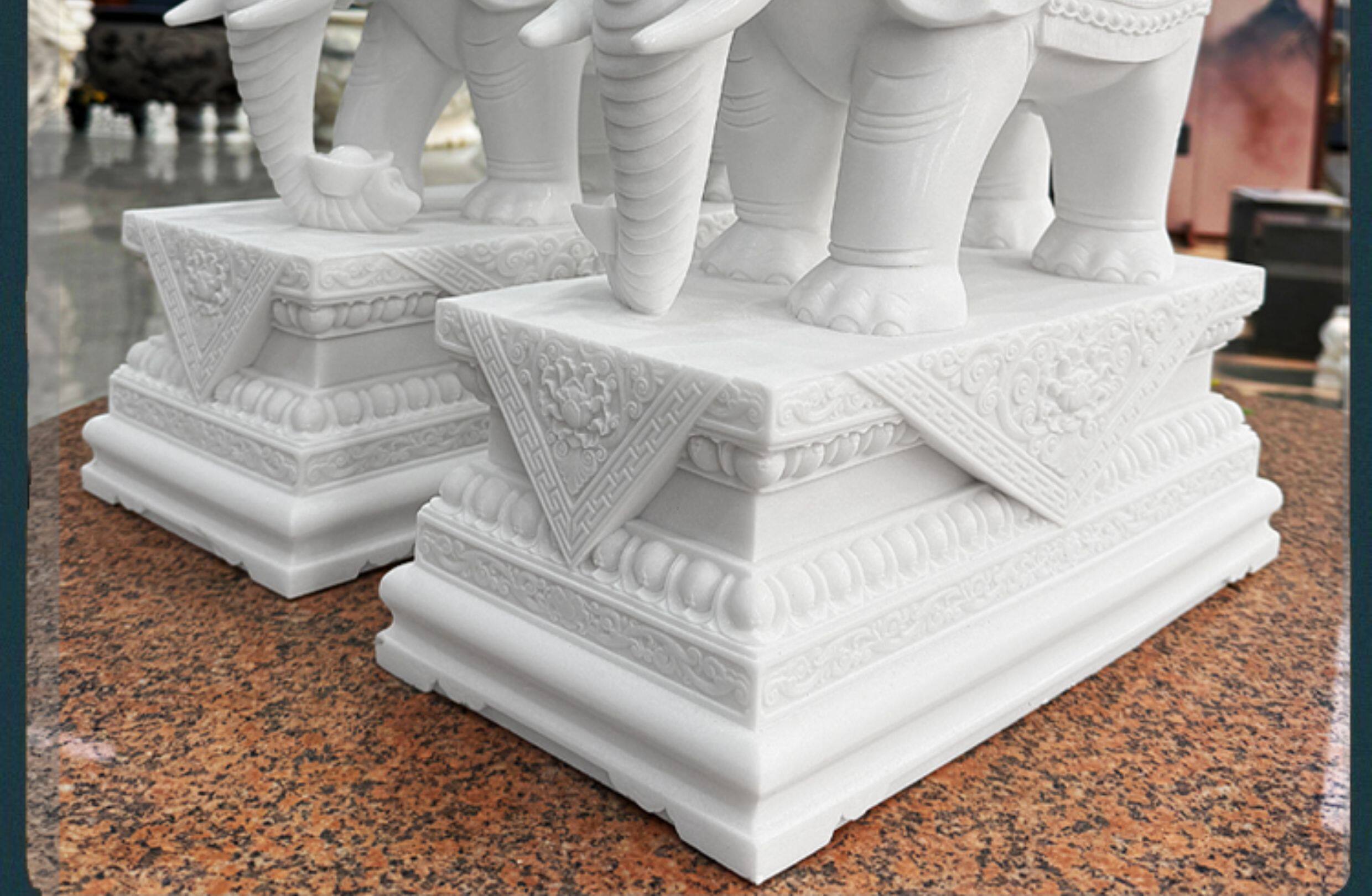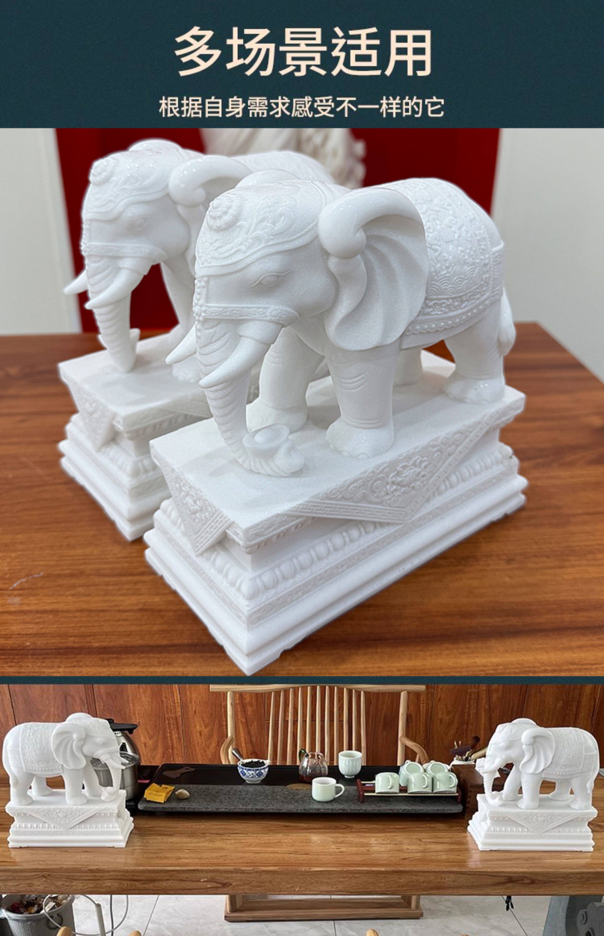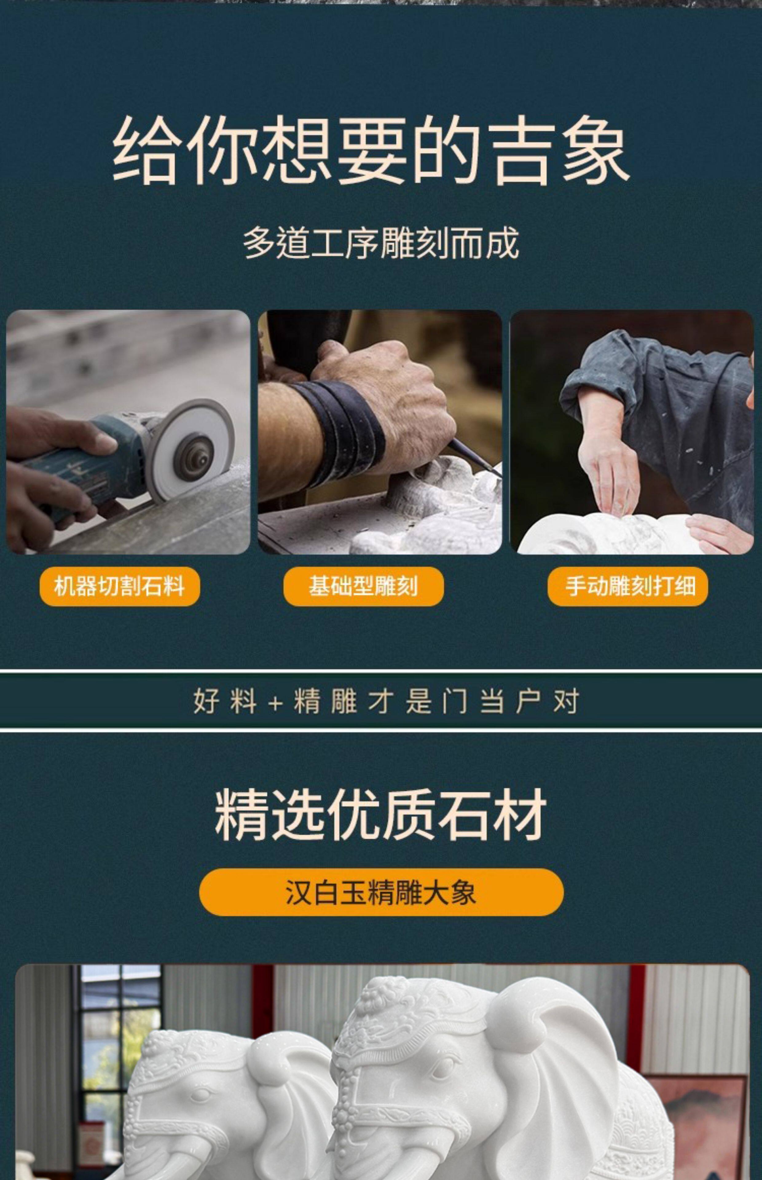 商品名称:汉白玉石雕大象摆件一对客厅招财办公桌玄关酒柜门口吸水吸财石象