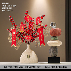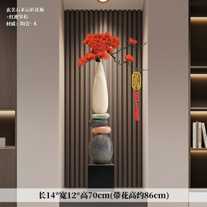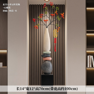 玄关石来运转花瓶+红色迎客松