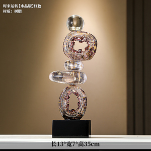 时来运转摆件+水晶球+好事发生摆盘【粉橙】+【暖居】盘架