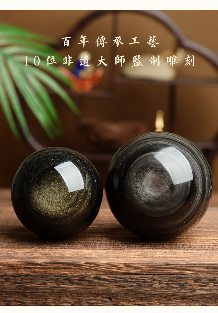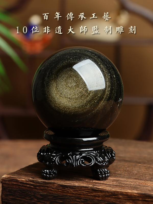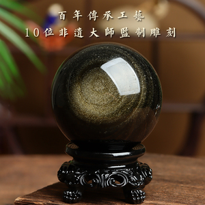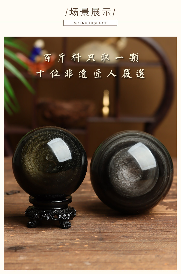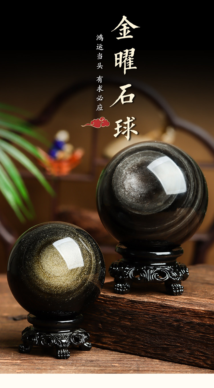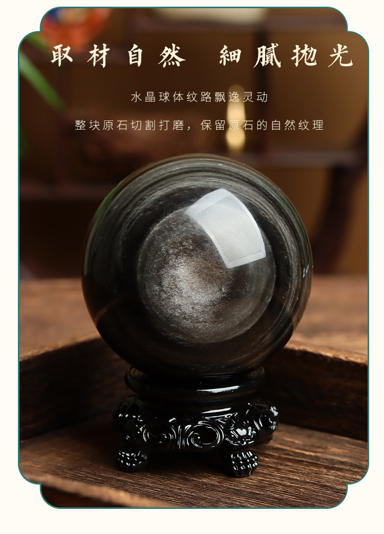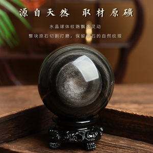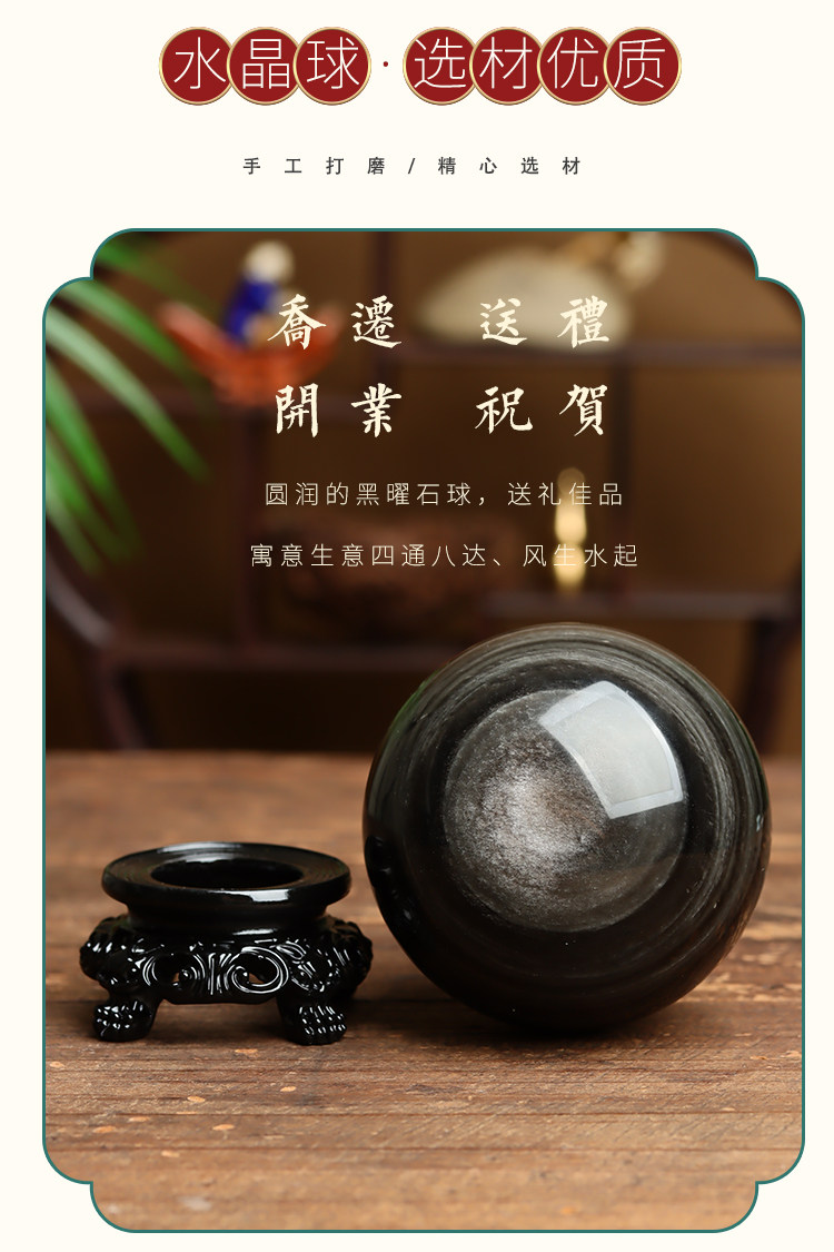 天然黑曜石球黑水晶球金曜石银耀石猫眼公司客厅家居摆件原石打磨